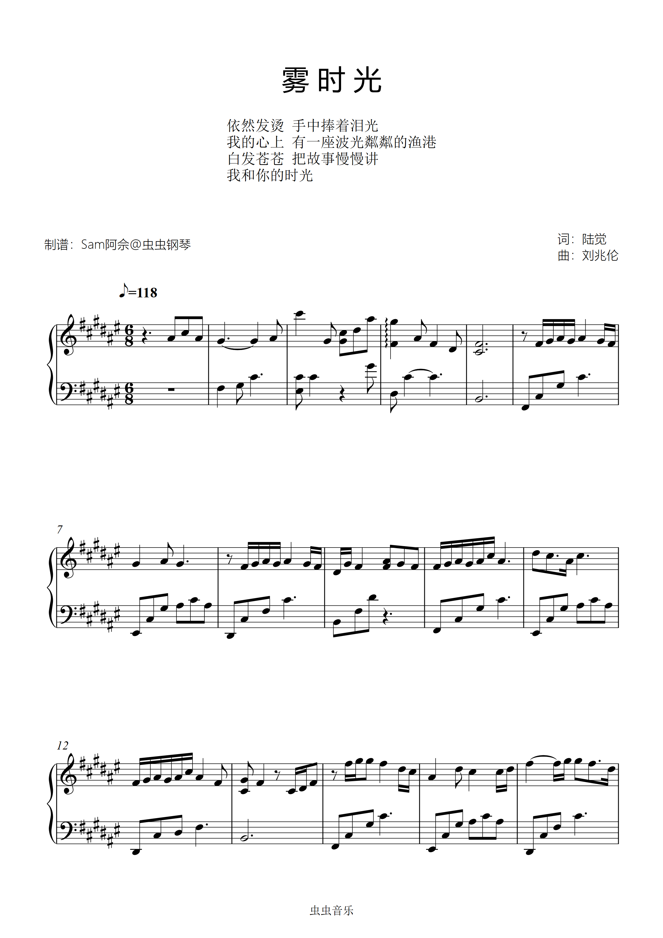钢琴谱:原调《雾时光》刘雨昕