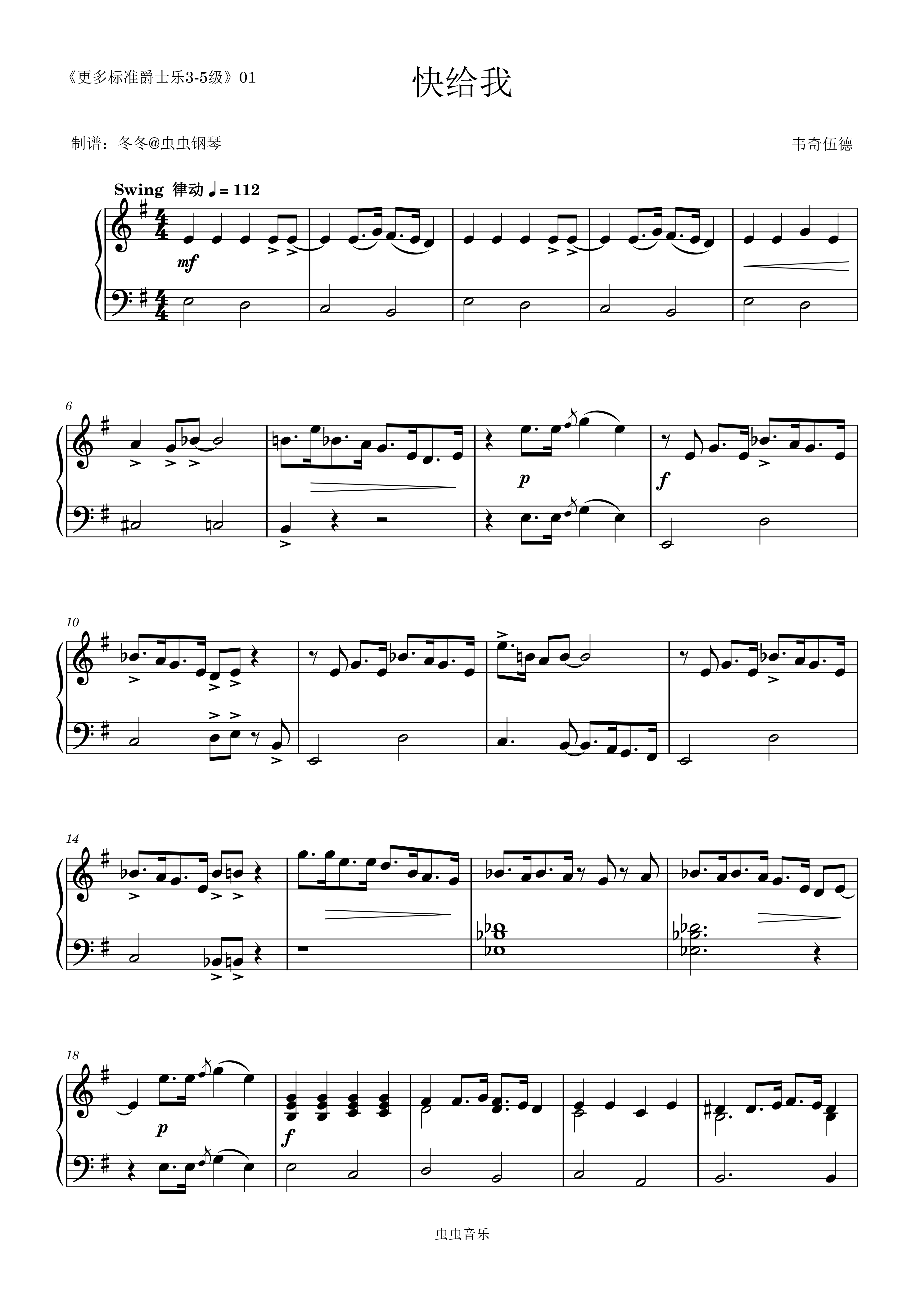 • 给你给我钢琴简谱 G调 数字双手 毛不易