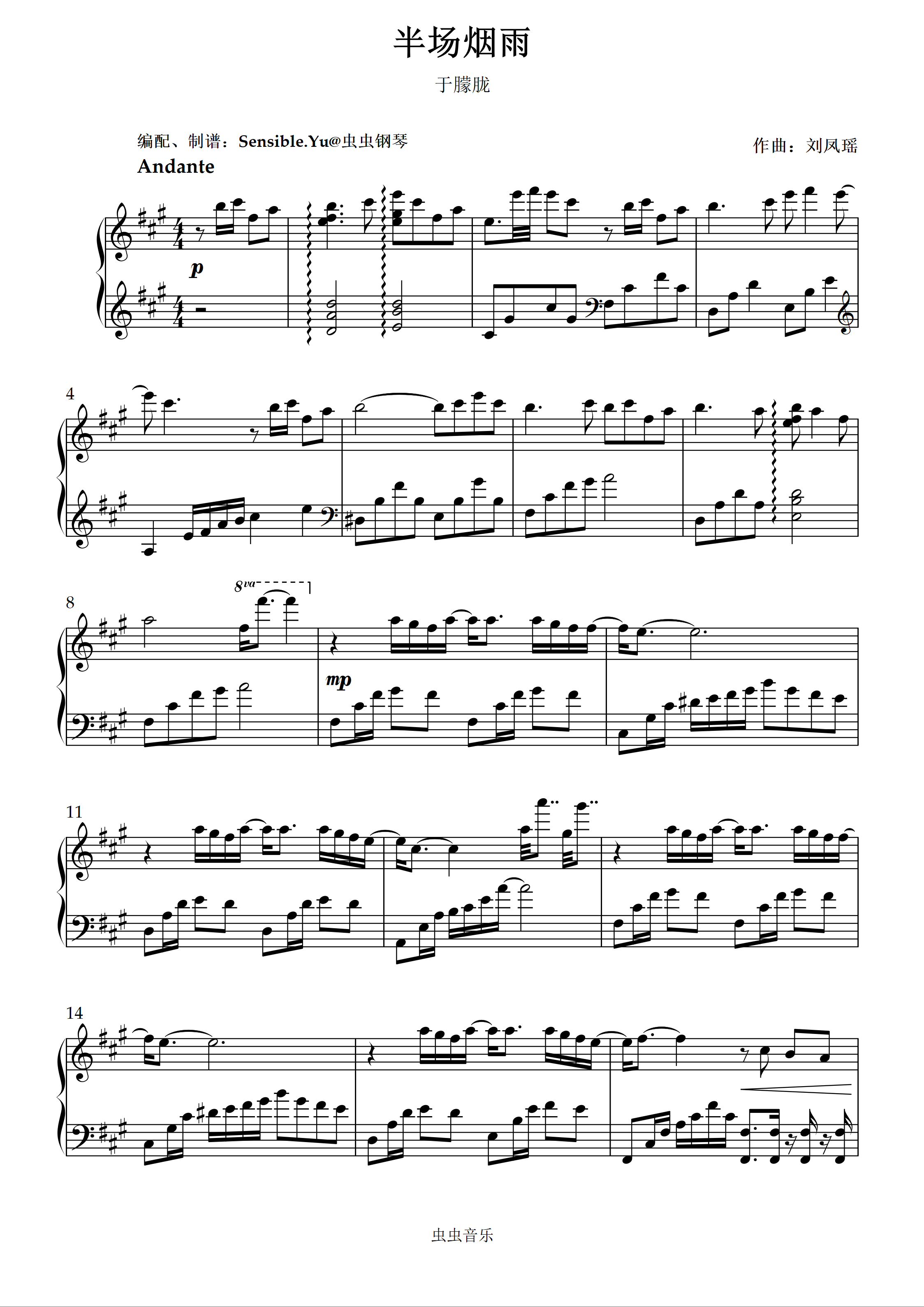 钢琴谱:《半场烟雨》——于朦胧(Sensible.Yu改编)