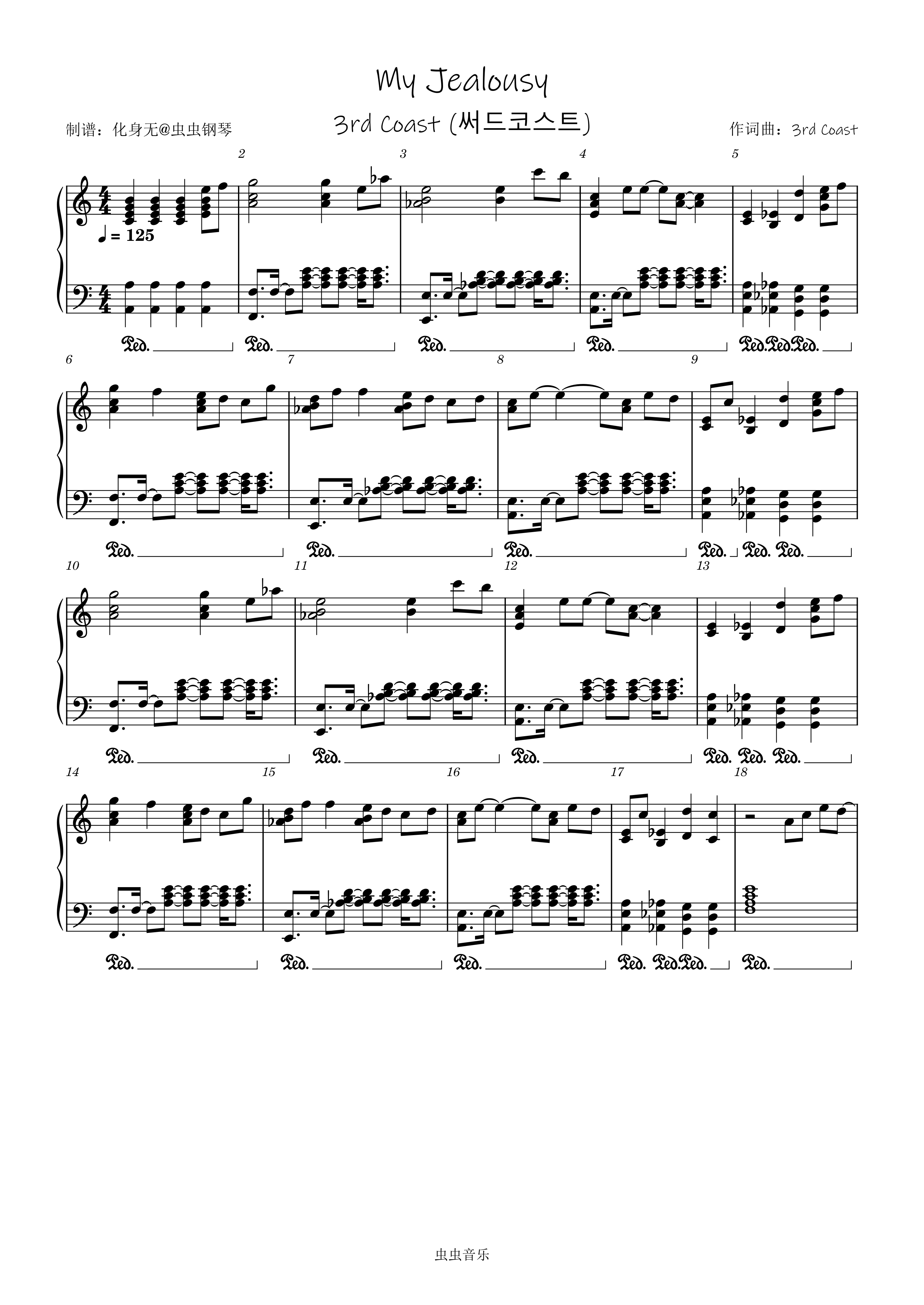 钢琴谱:My Jealousy C调独奏版 化身无编配
