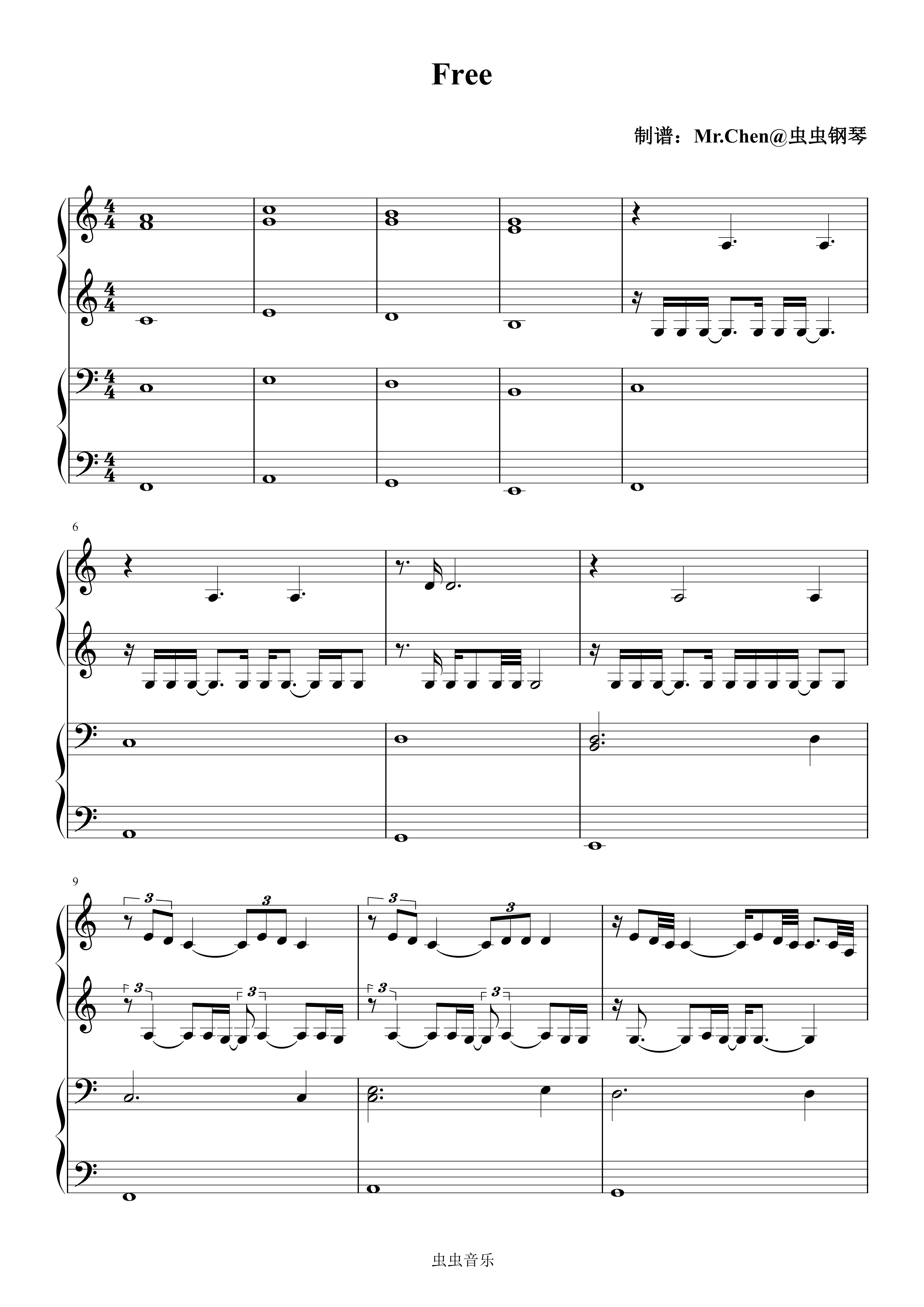 钢琴谱:Free (四手联弹)C调 - 动画电影《K-POP:猎魔女团》插曲