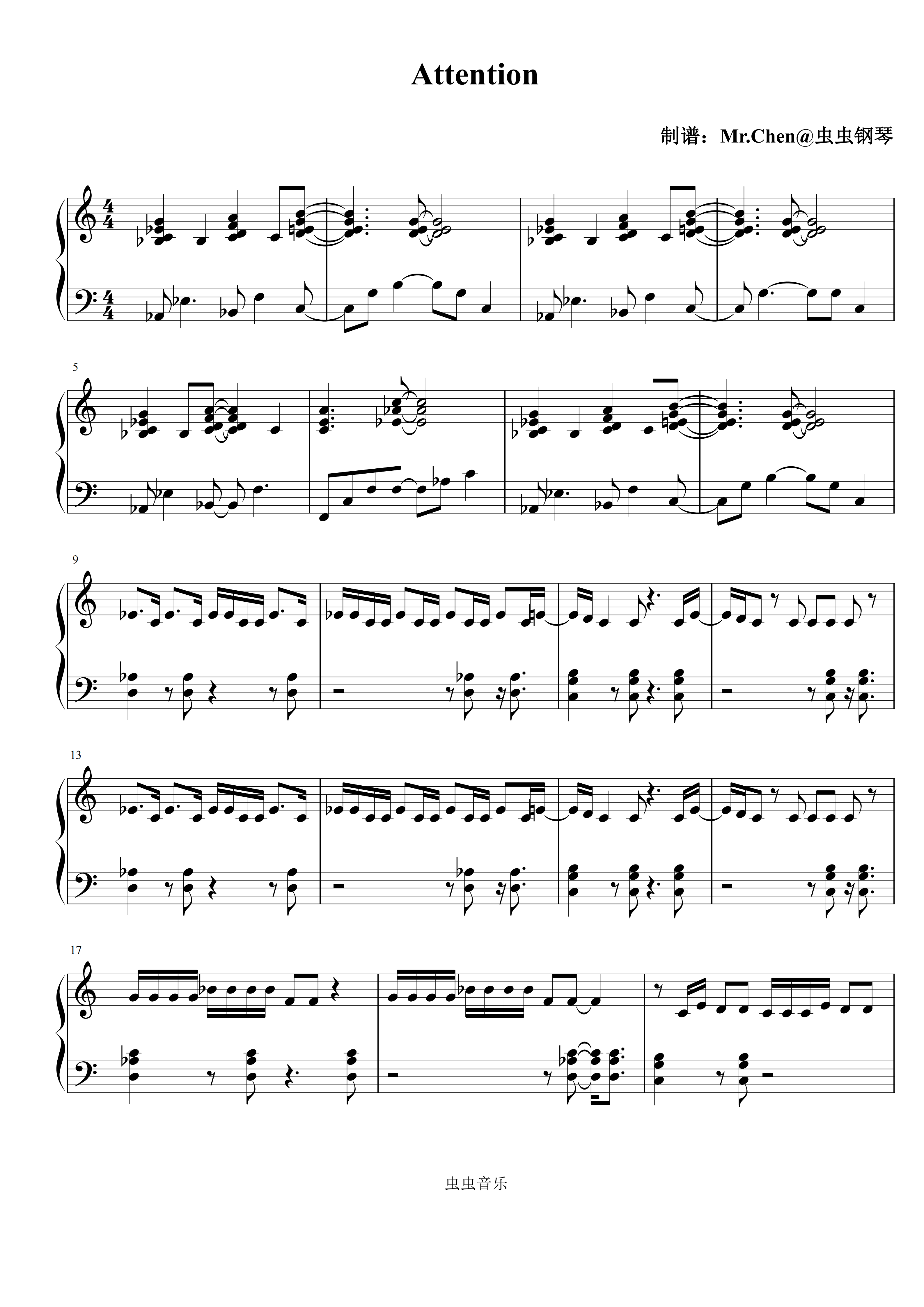 钢琴谱:Attention C调 - New Jeans