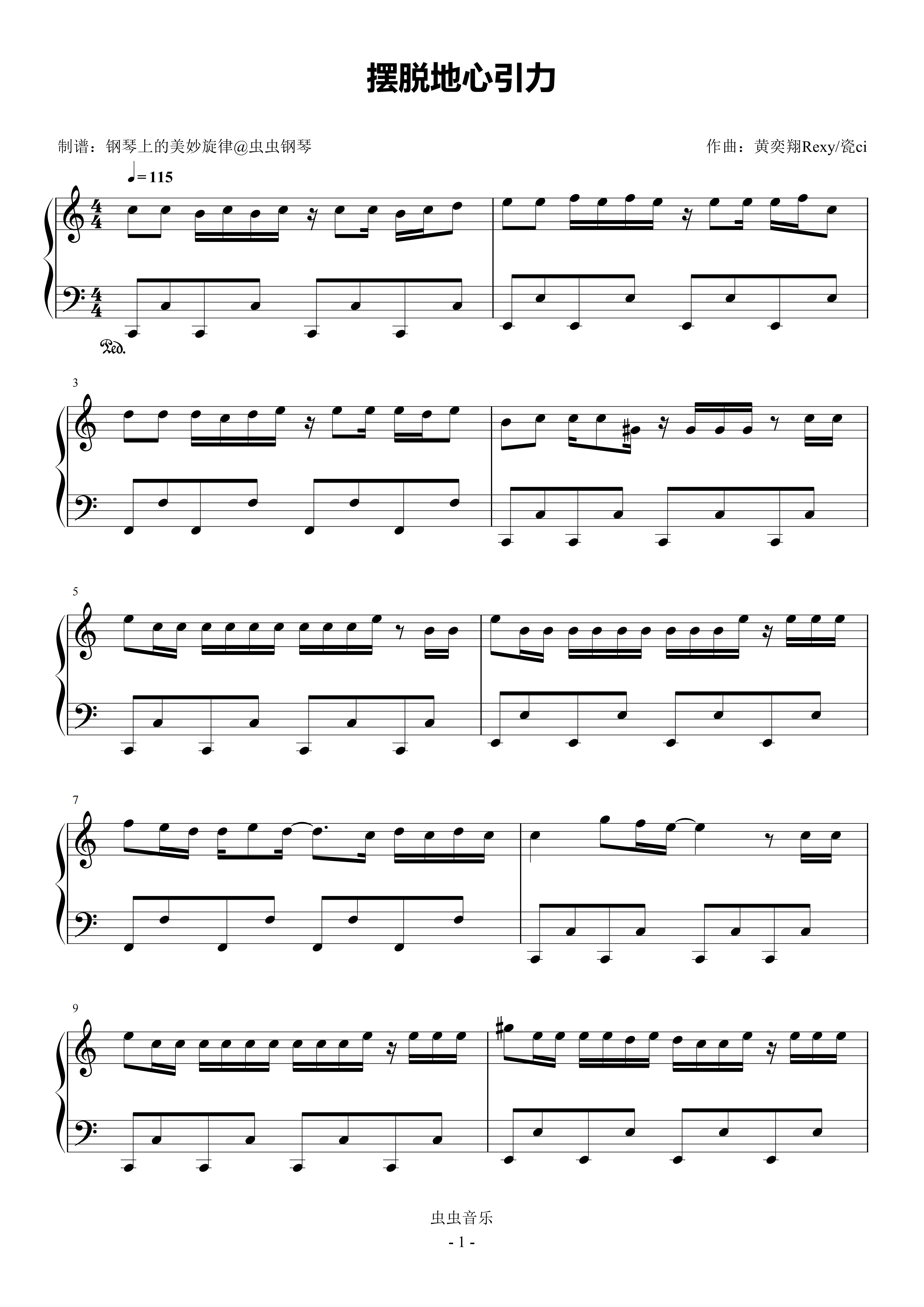 摆脱地心引力钢琴简谱 数字双手