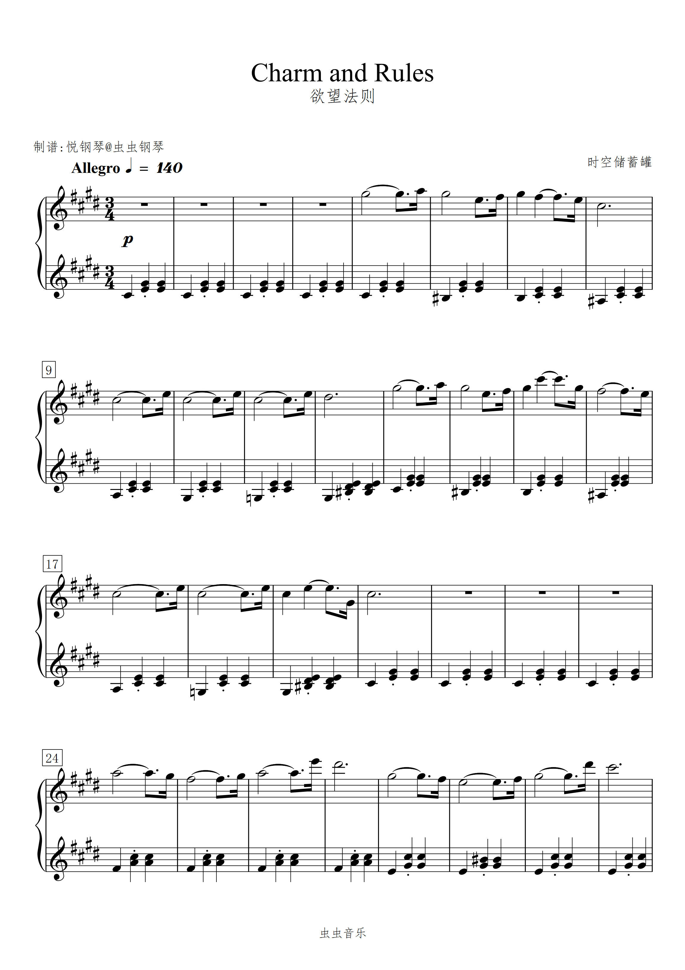 钢琴谱:欲望法则/Charm and Rules 【宁静】