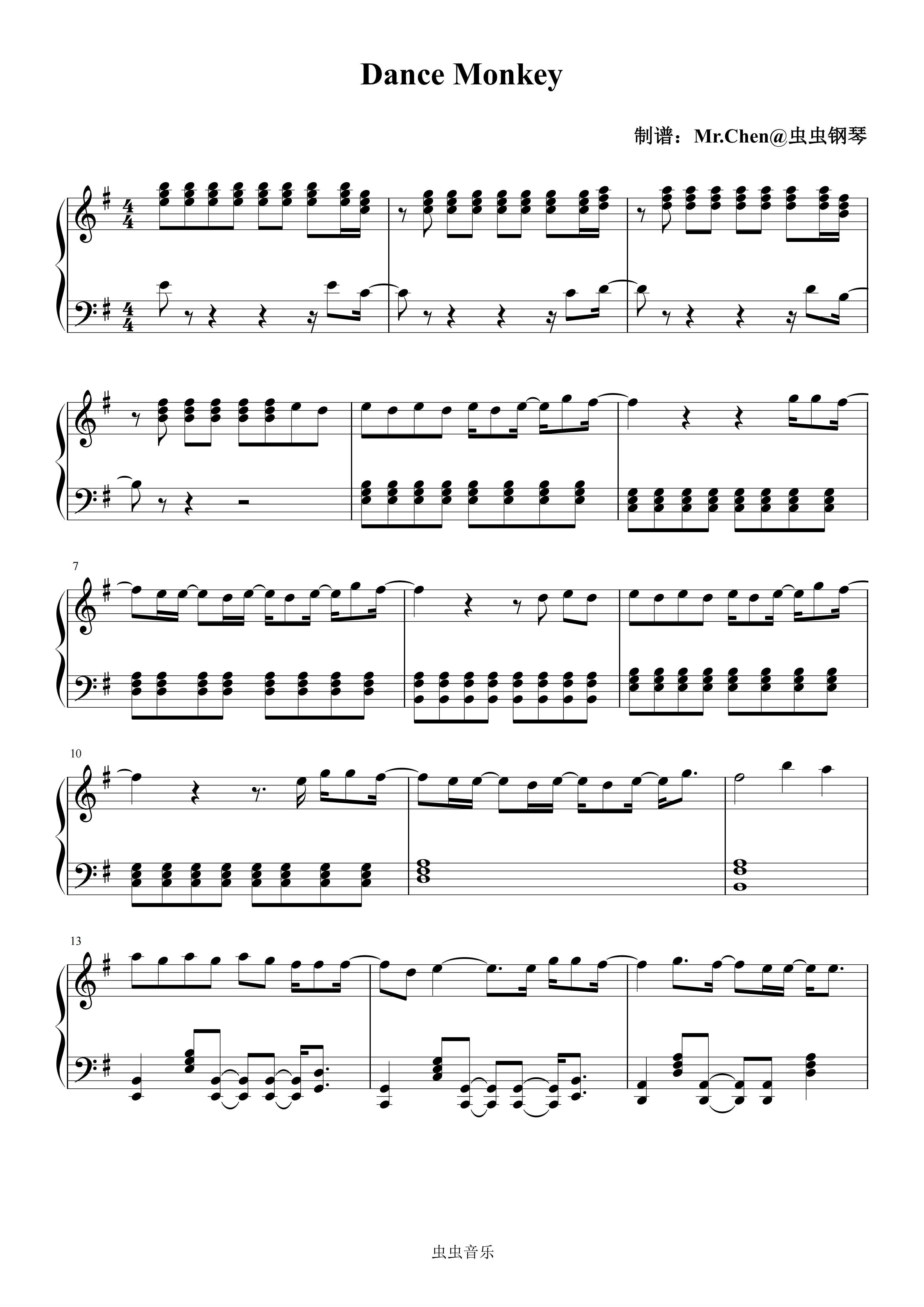 钢琴谱:Dance Monkey G调 - Tones and I