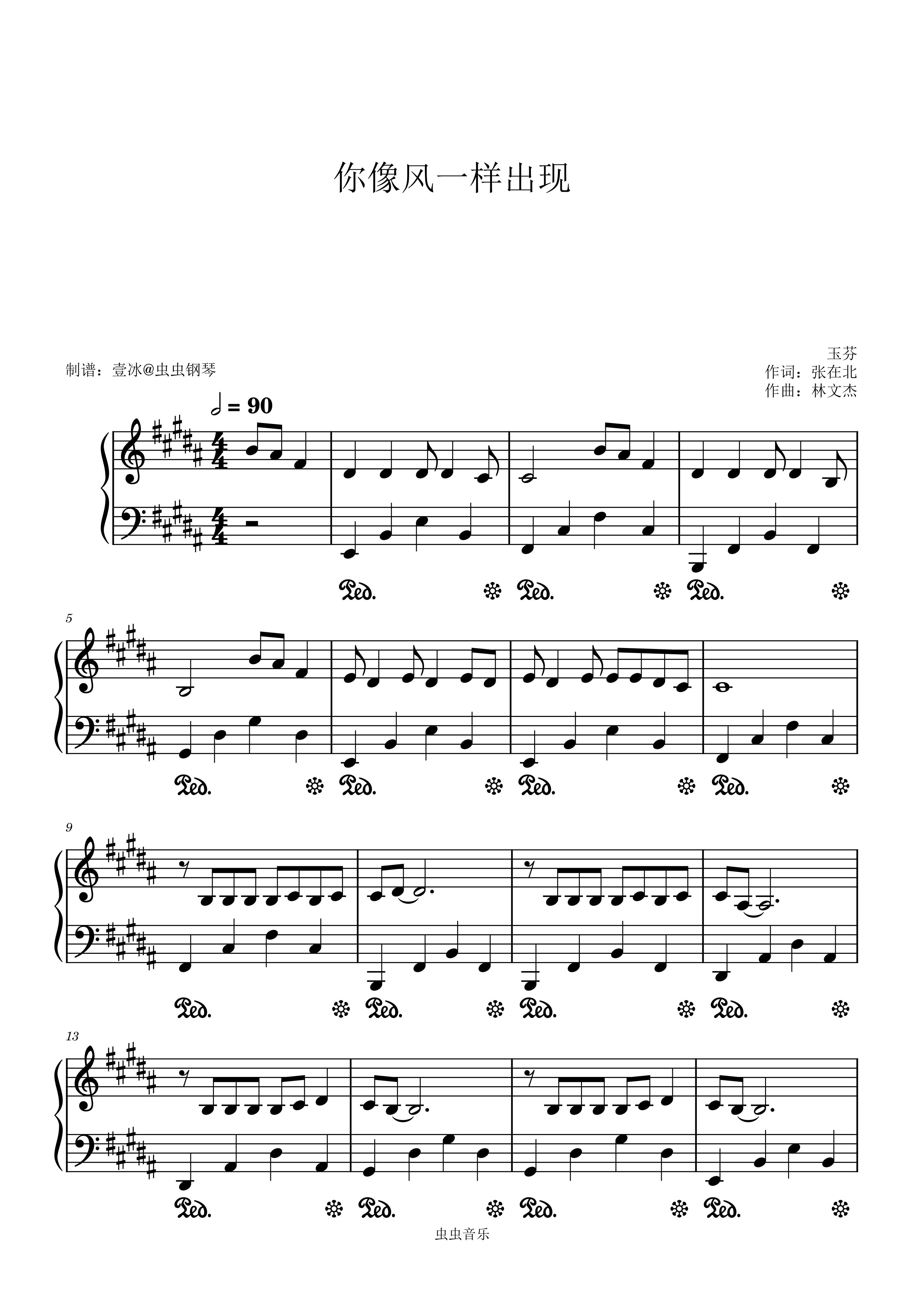 • 你别像风一样钢琴简谱 c调 数字双手 殷语森