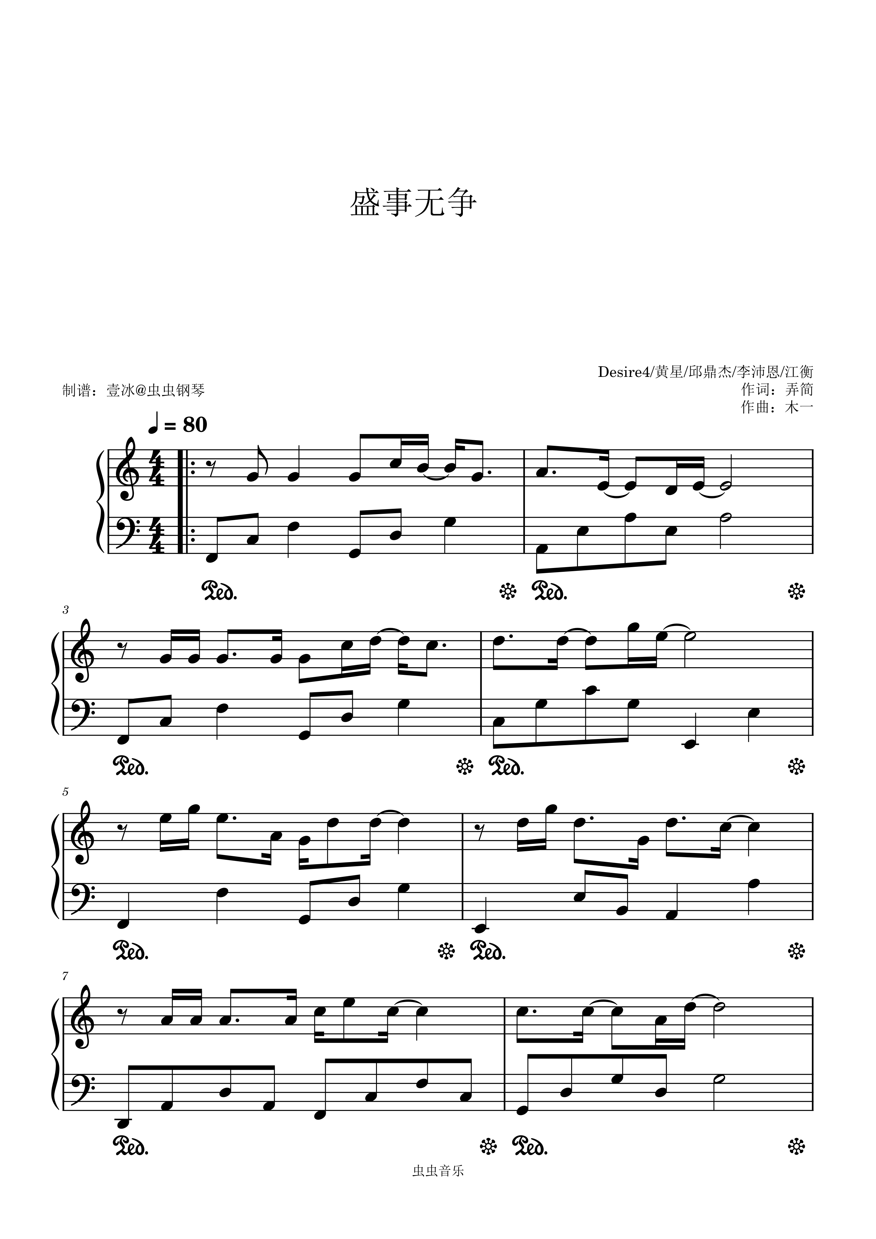 钢琴谱:盛世无争-Desire4/黄星/邱鼎杰/李沛恩/江衡 C调