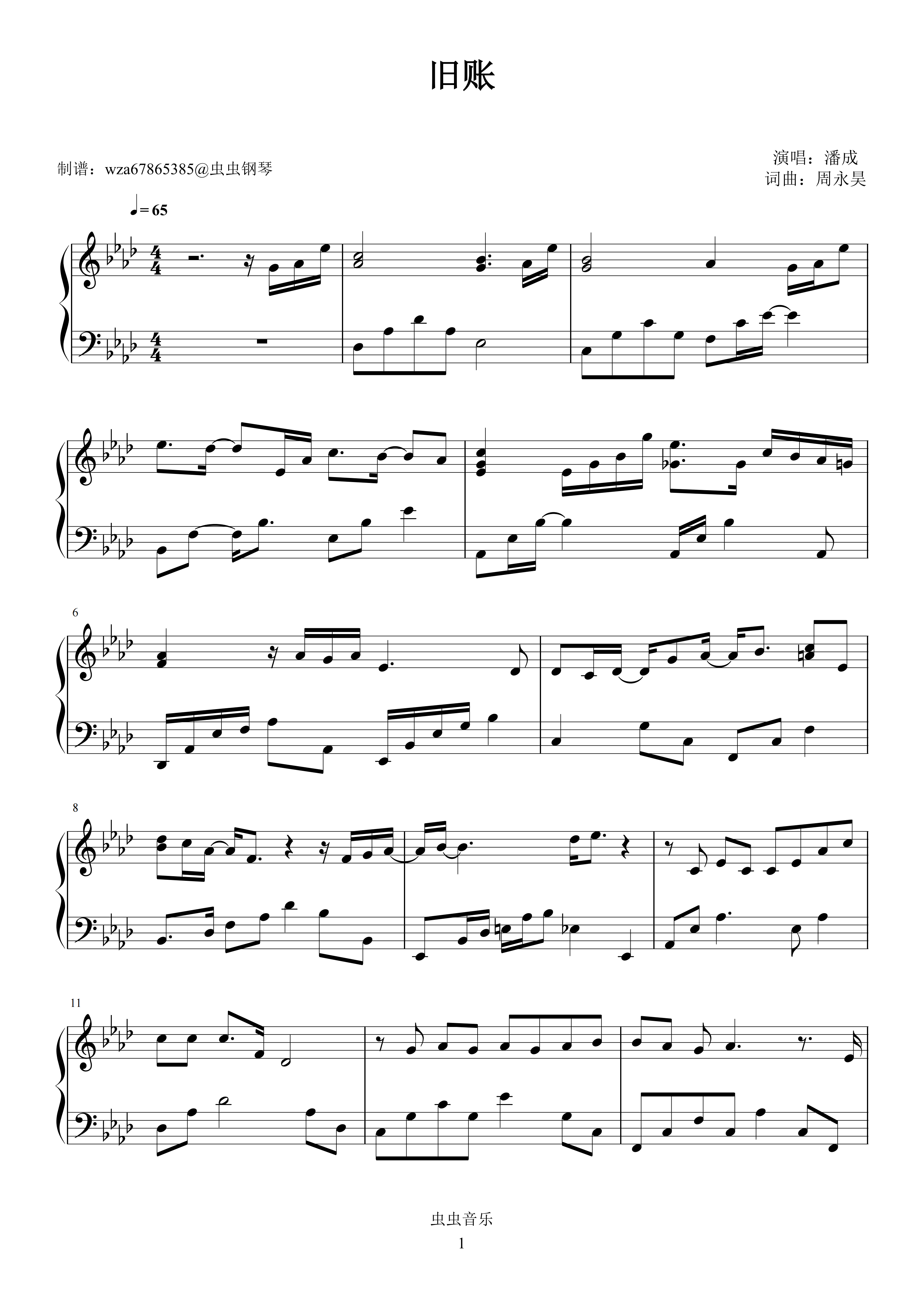 • 旧账钢琴简谱 C调 数字双手 陶峻汐