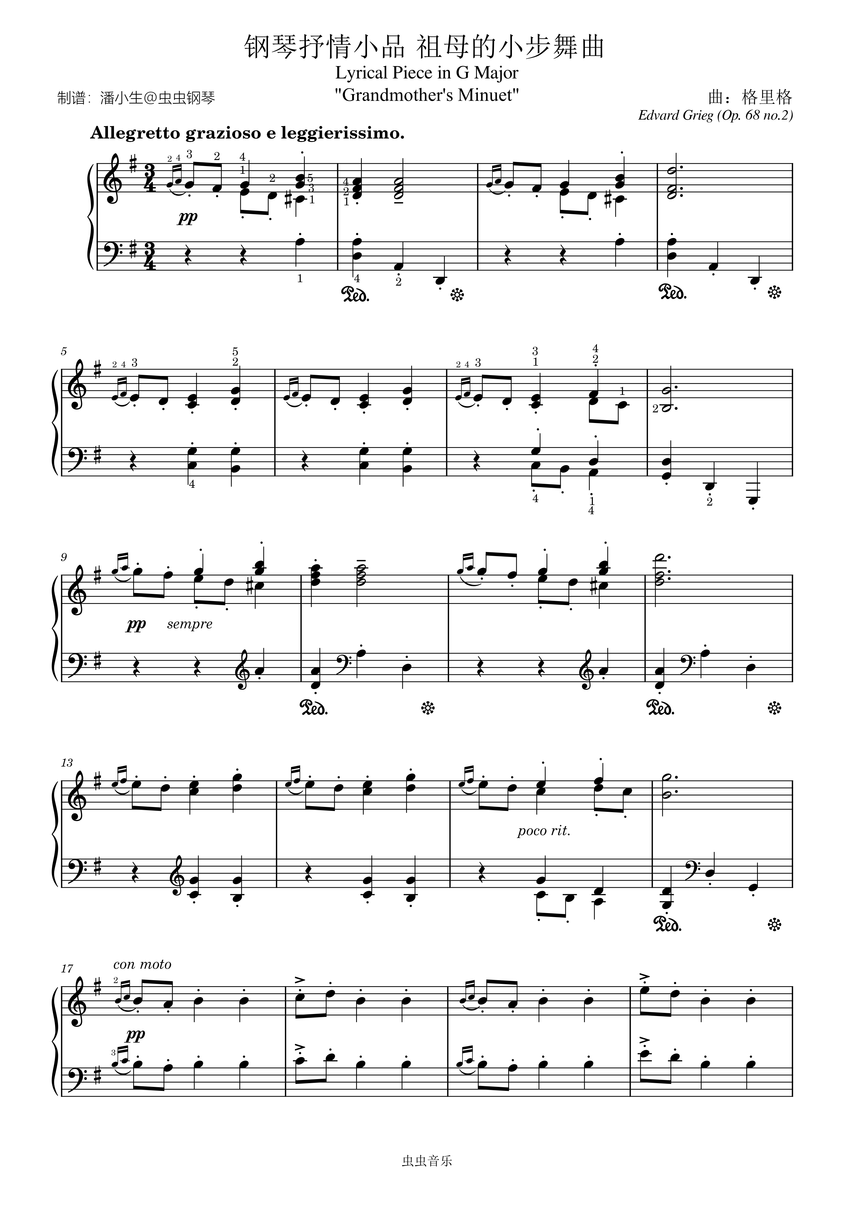 格里格 钢琴抒情小品 祖母的小步舞曲 Op.68 No.2, Grandmother's Minuet 原版带指法 钢琴独奏谱