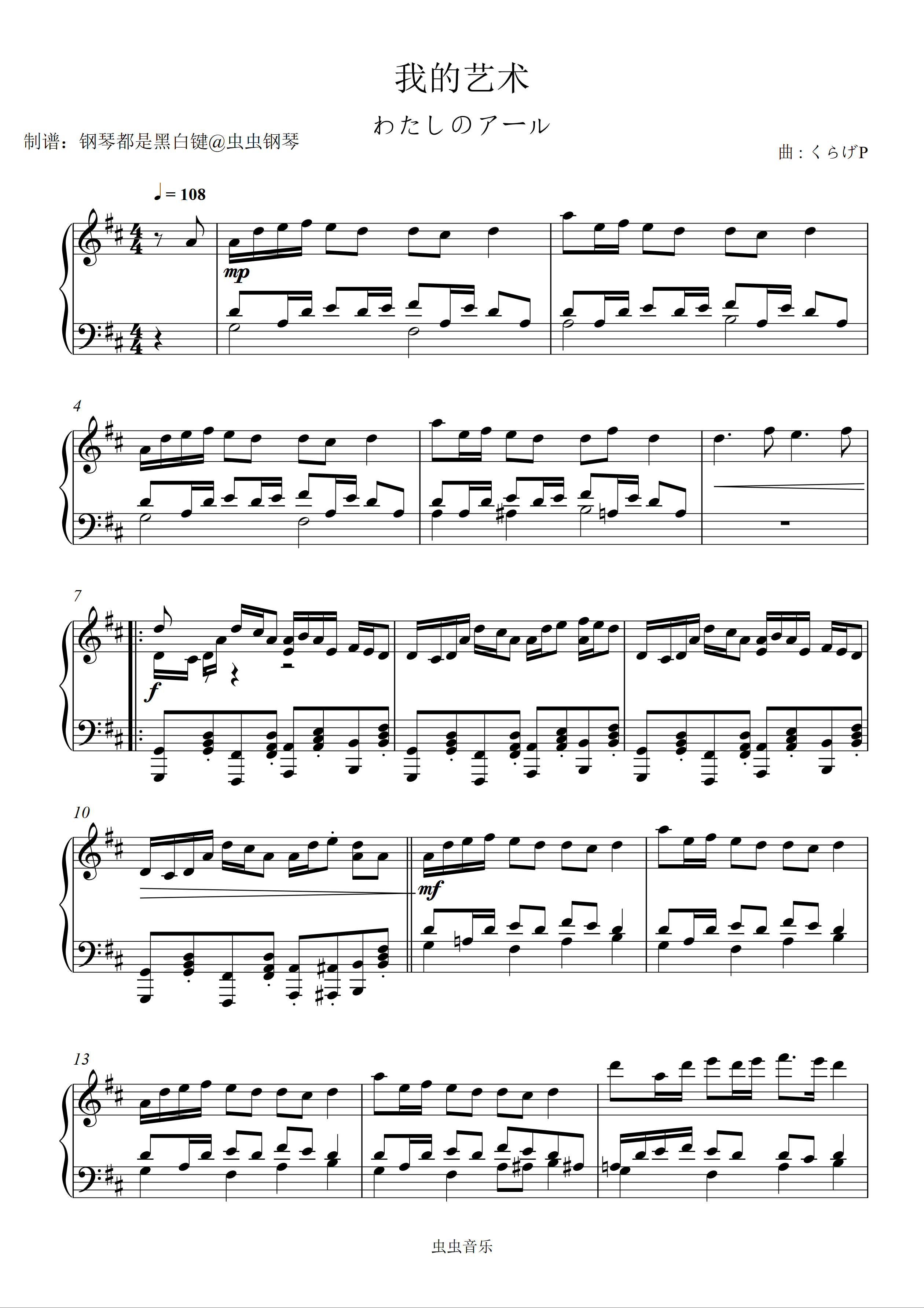 钢琴谱:[初音ミク]我的艺术/わたしのアール