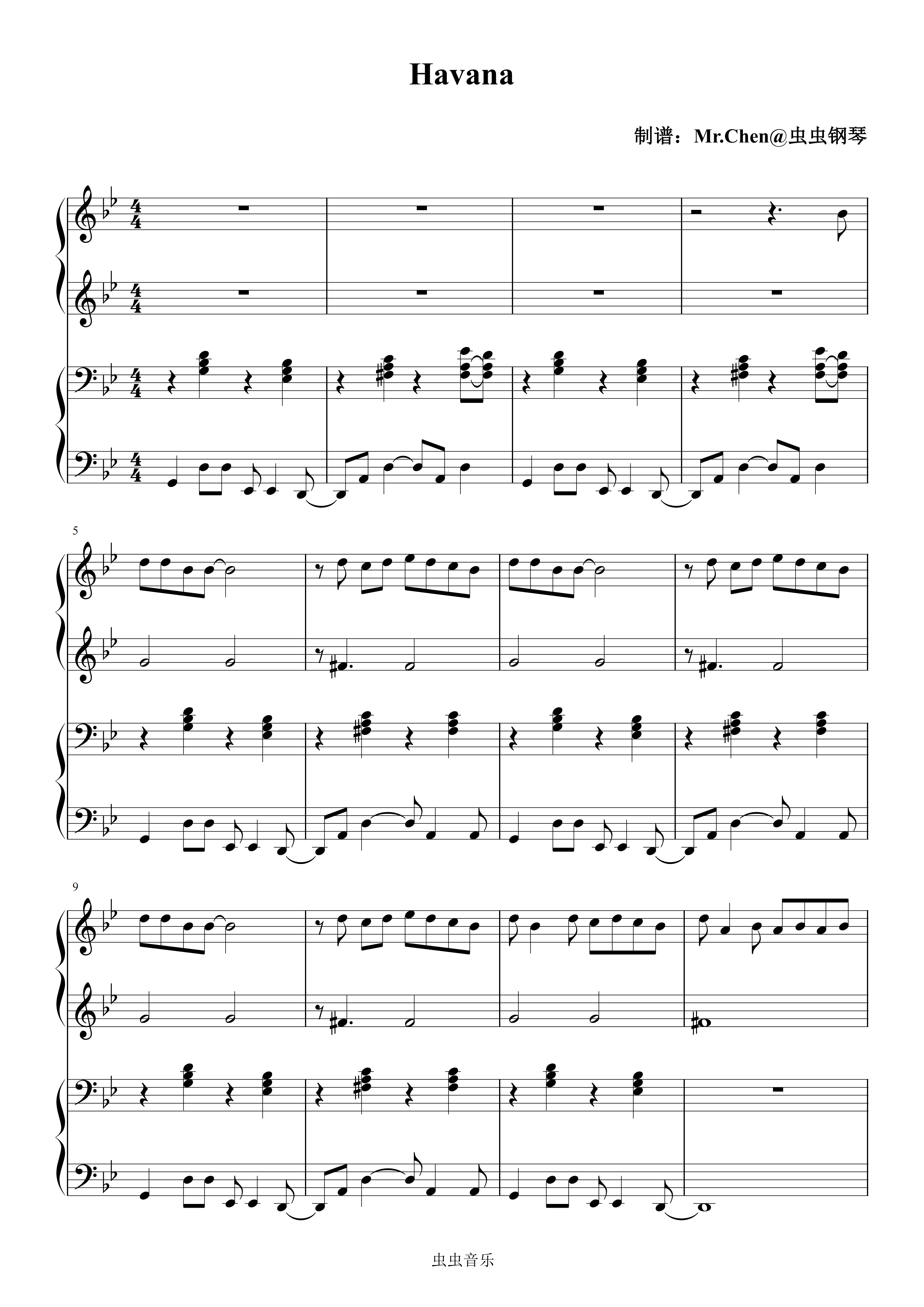 • Havana钢琴简谱 g调 数字双手 Camila Cabello/Pharrell Williams