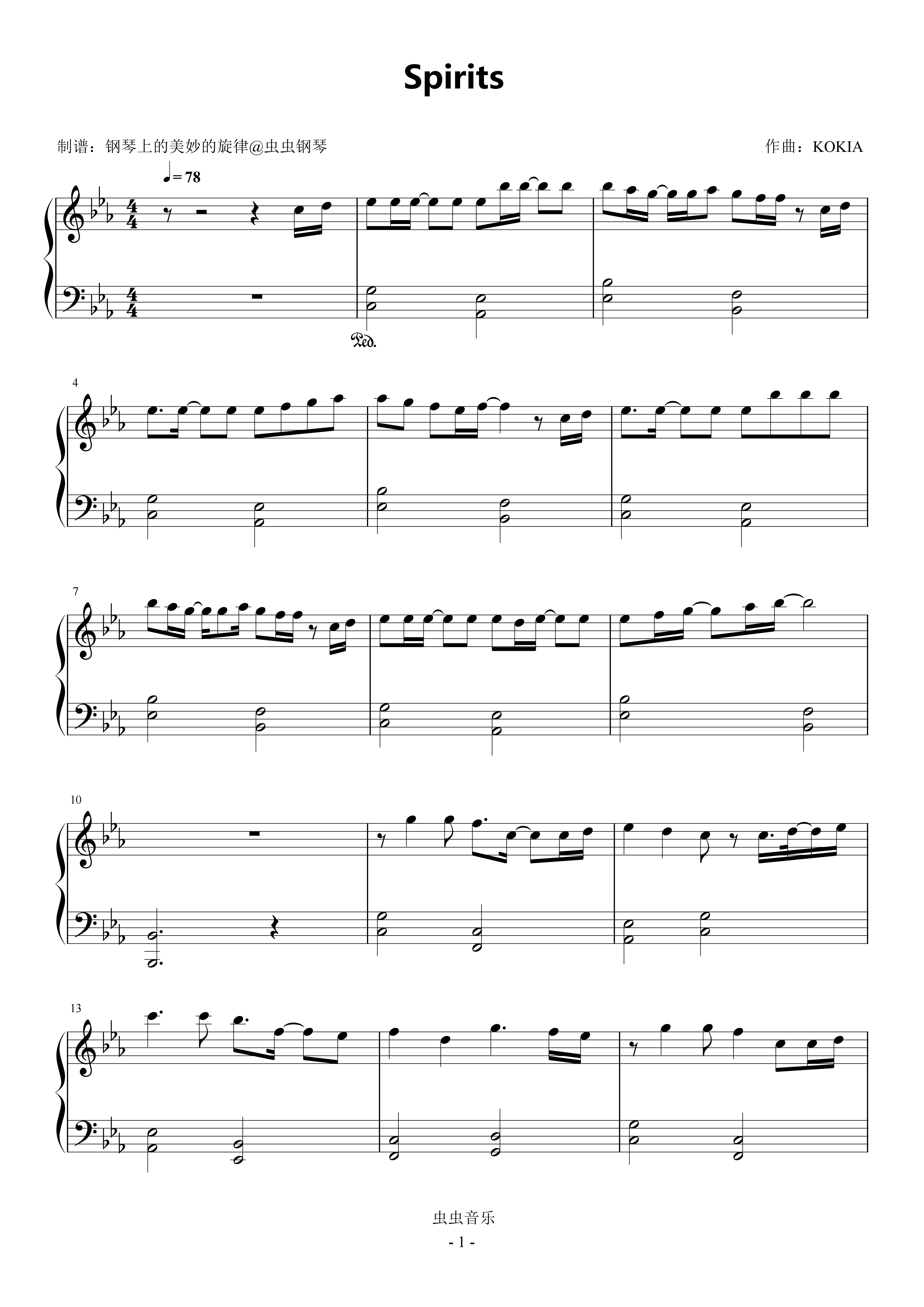 钢琴谱:Spirits 原调简易版 游戏《阿尔卡迪亚的苍之巫女》主题曲)