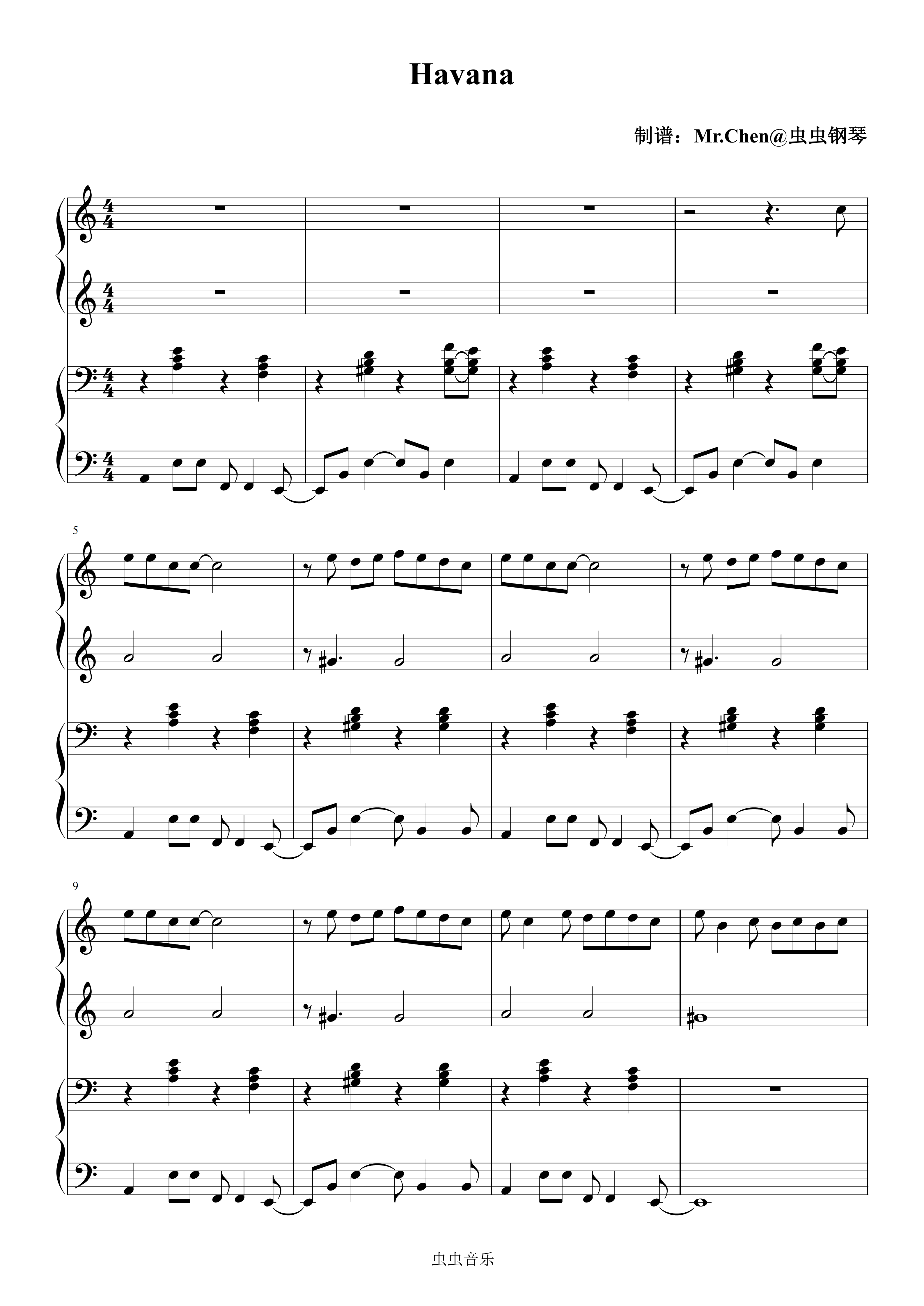 钢琴谱:Havana (四手联弹)C调 - Camila Cabello