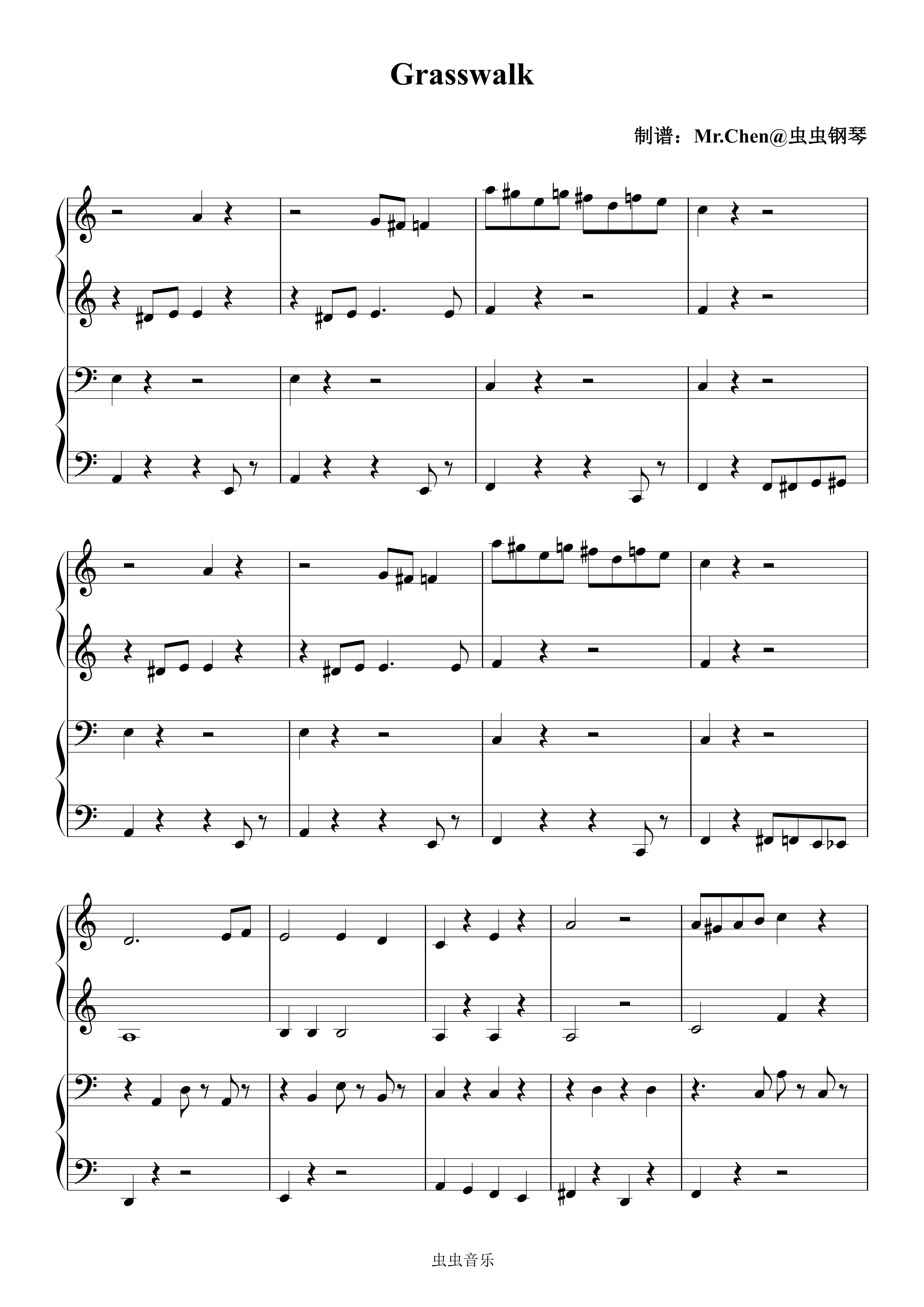 钢琴谱:植物大战僵尸 白天草坪 (四手联弹)- Grasswalk