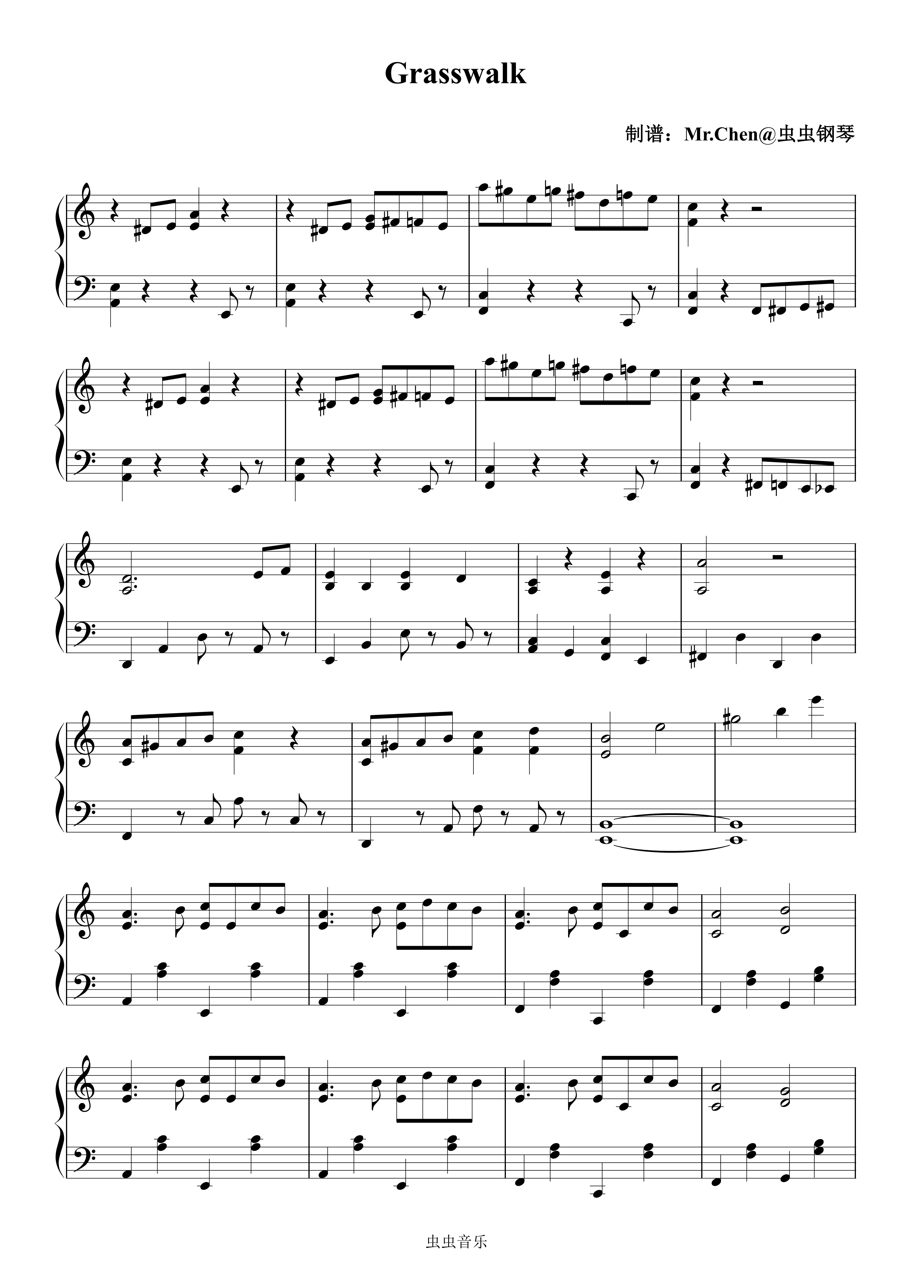 钢琴谱:植物大战僵尸 白天草坪 - Grasswalk 极度还原
