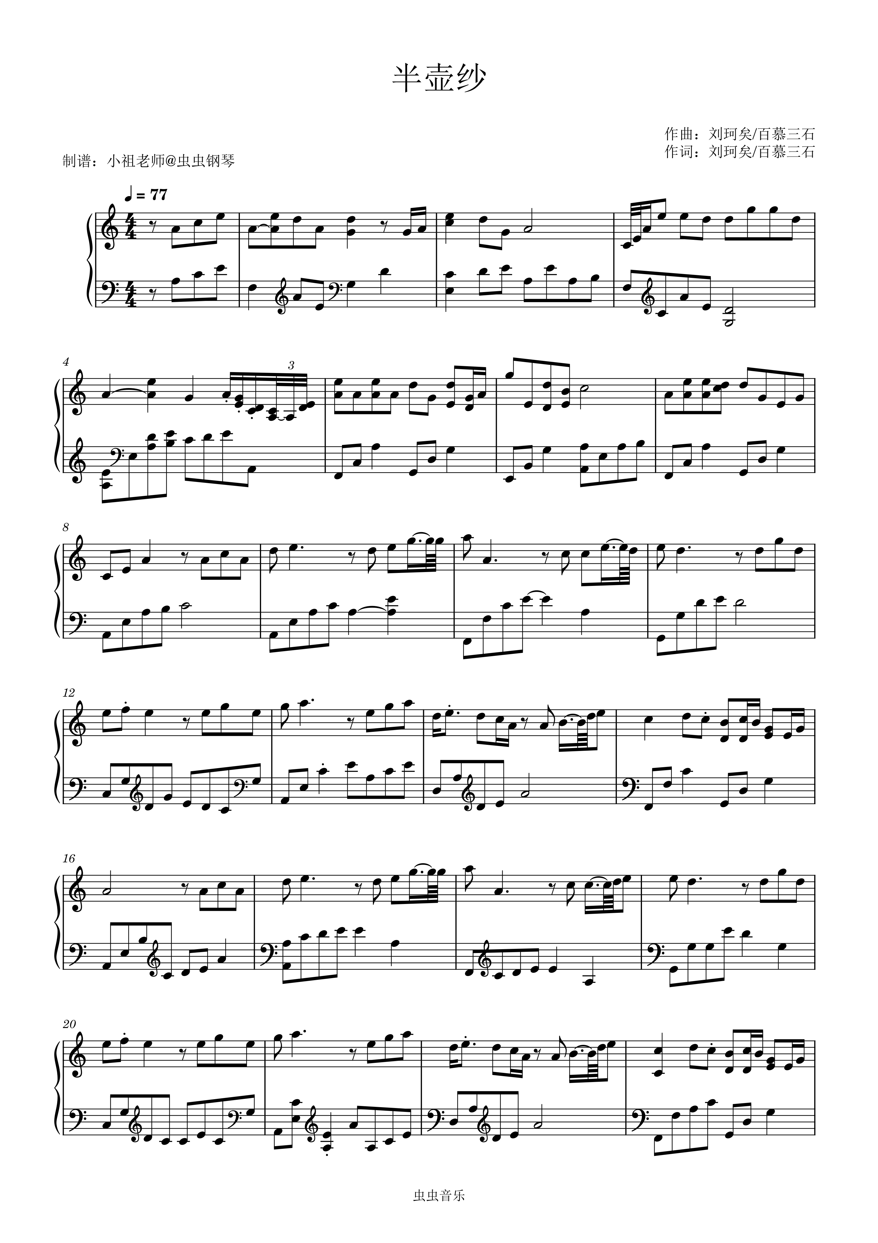 半壶纱钢琴简谱 数字双手 刘珂矣/百慕三石