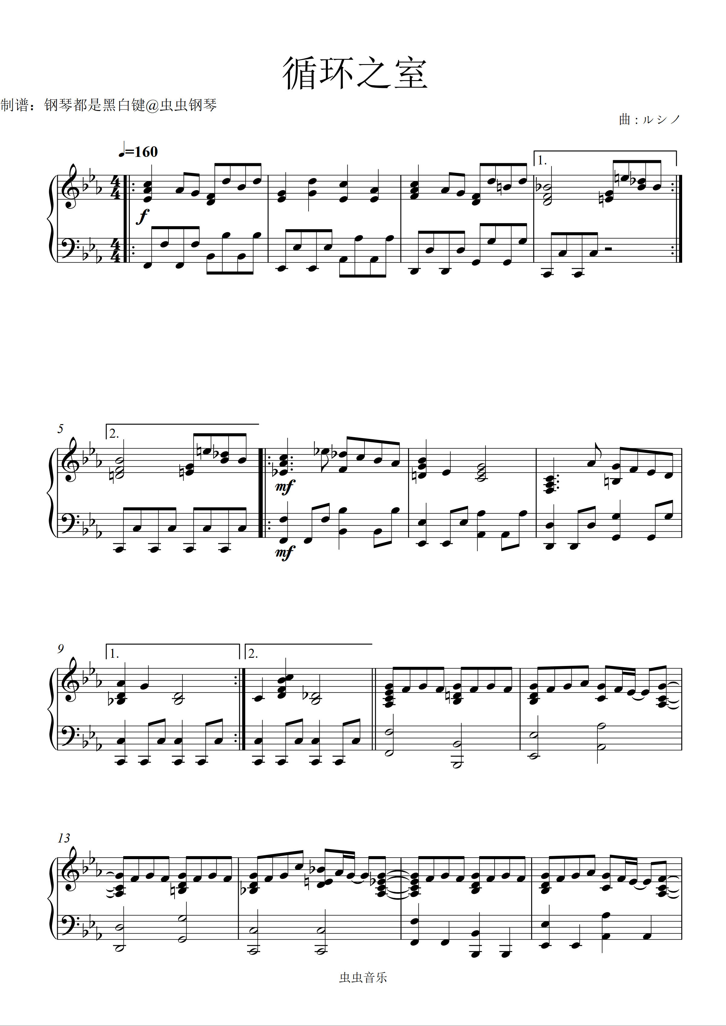 钢琴谱:[初音ミク]循环之室(中等难度演奏版)