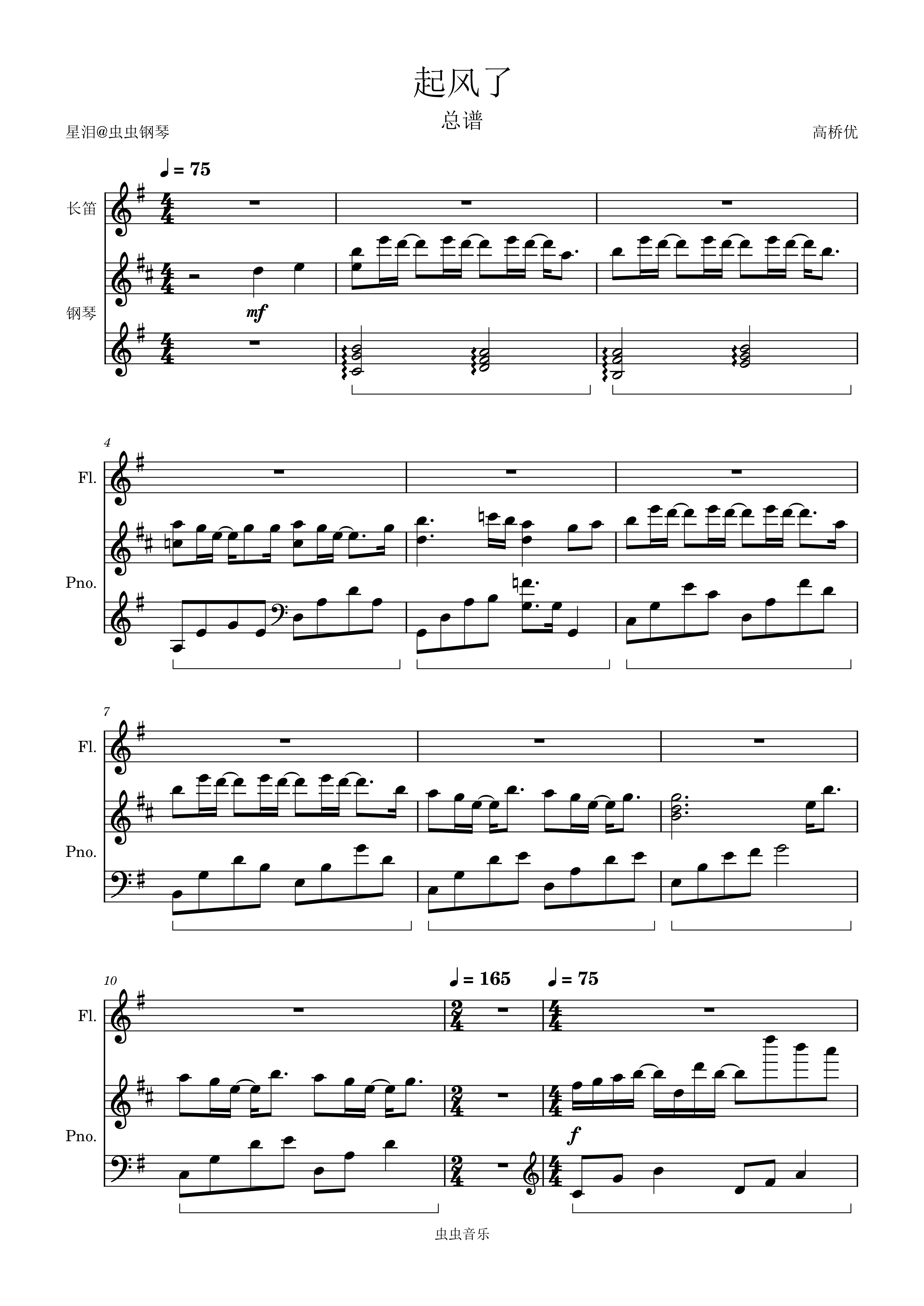 • 起风了钢琴简谱 G调 数字双手