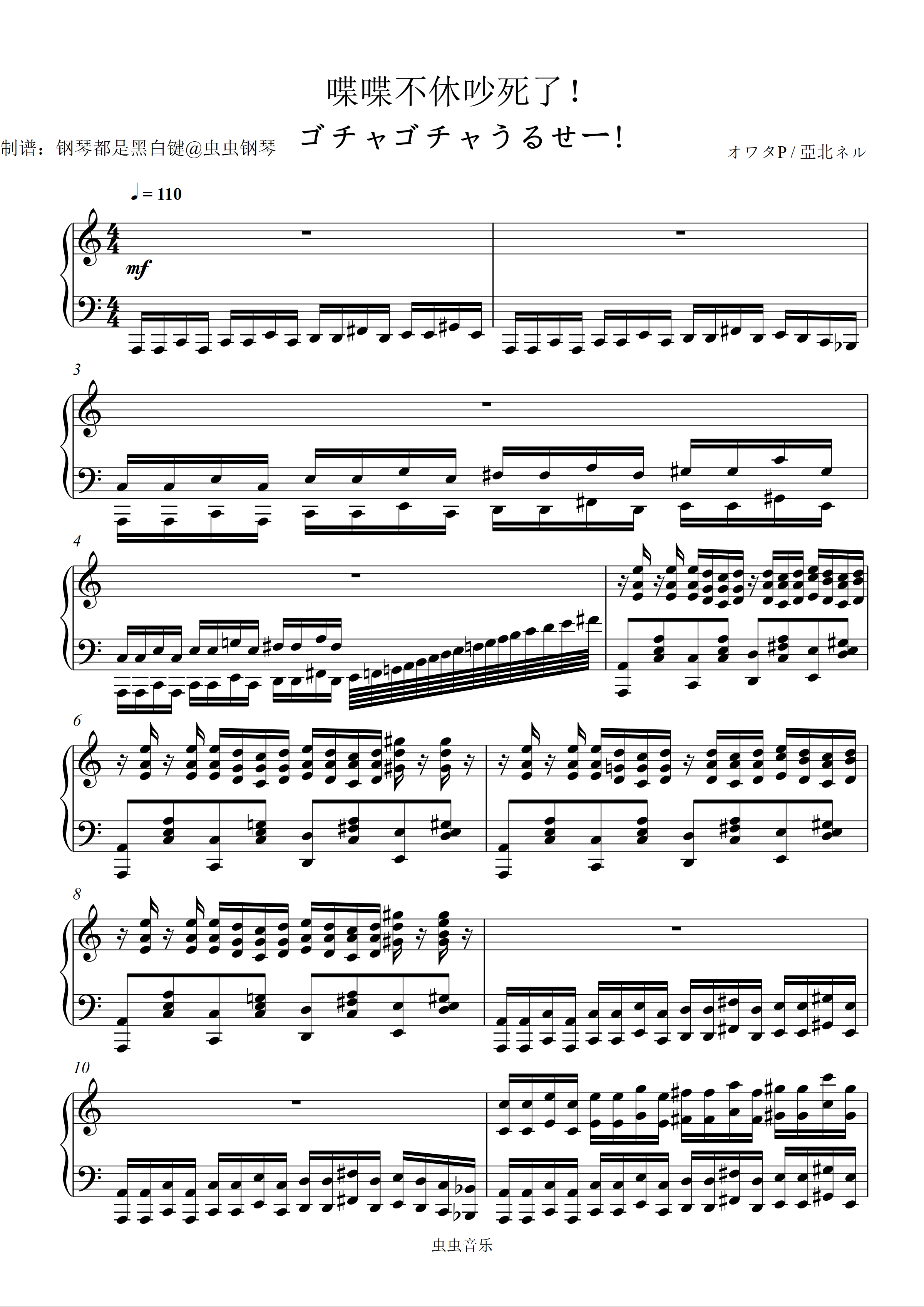 钢琴谱:【亞北ネル】喋喋不休地吵死啦!