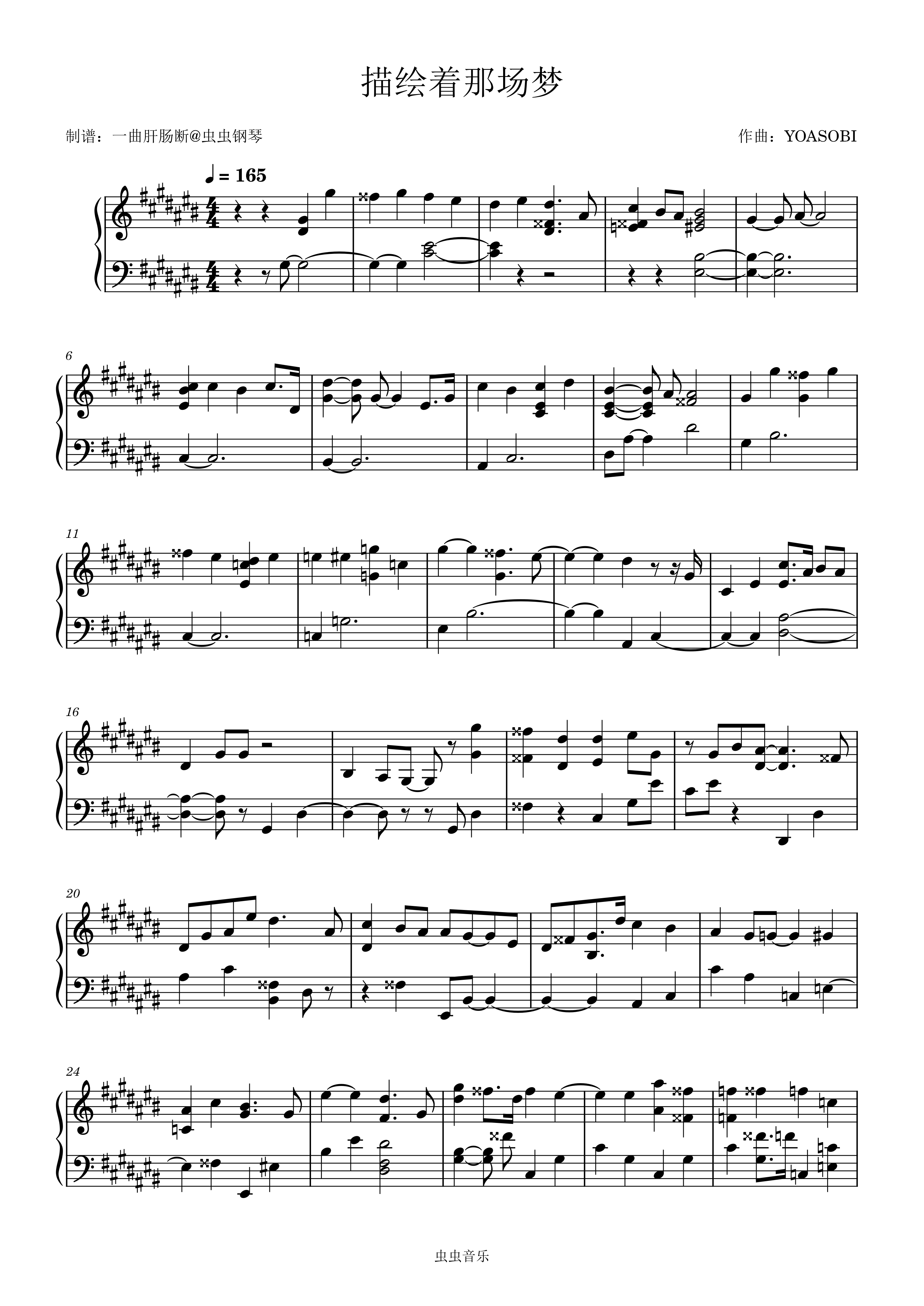 描绘着那场梦钢琴简谱 数字双手 YOASOBI