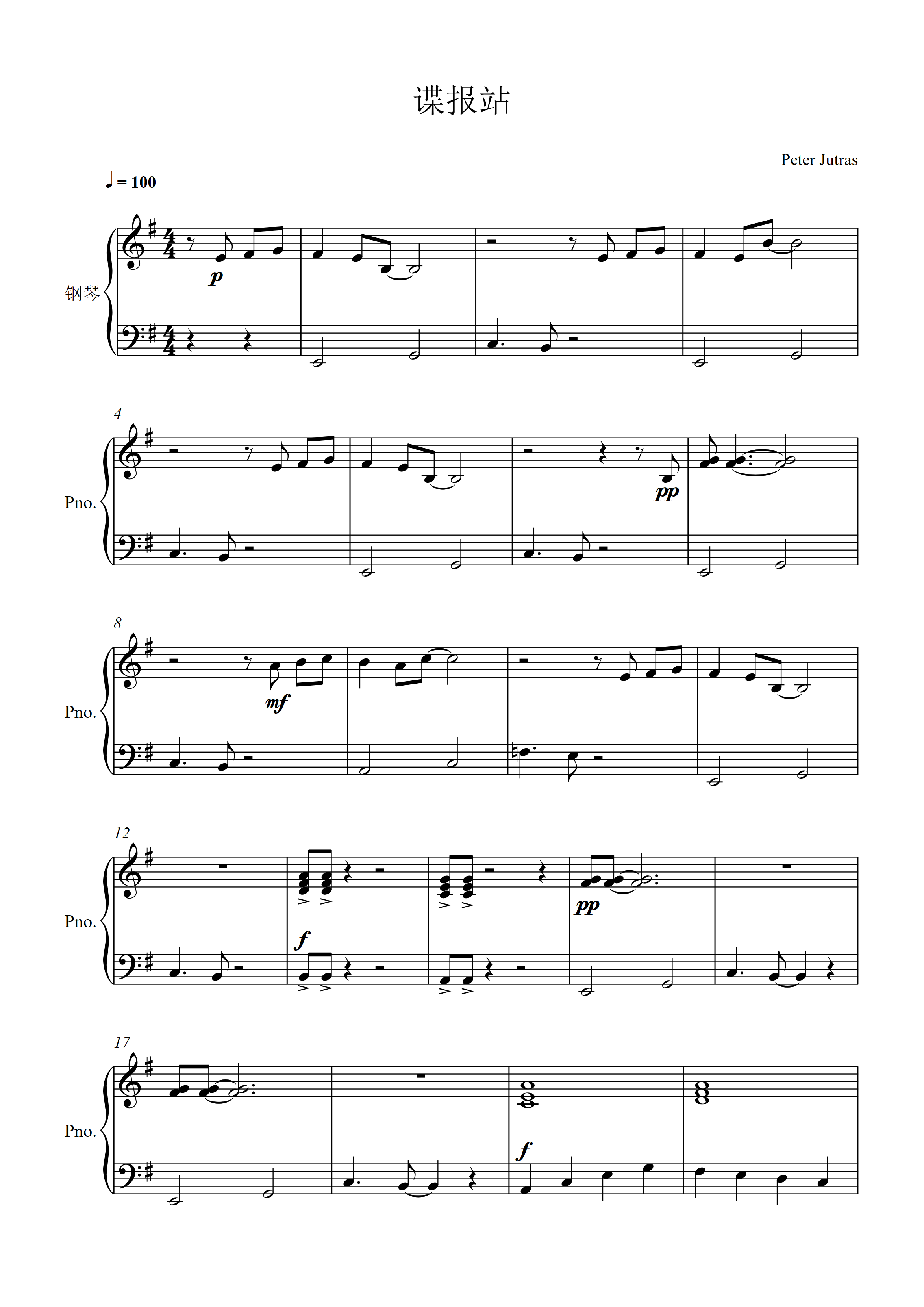 钢琴谱:諜报站 Secret Agent