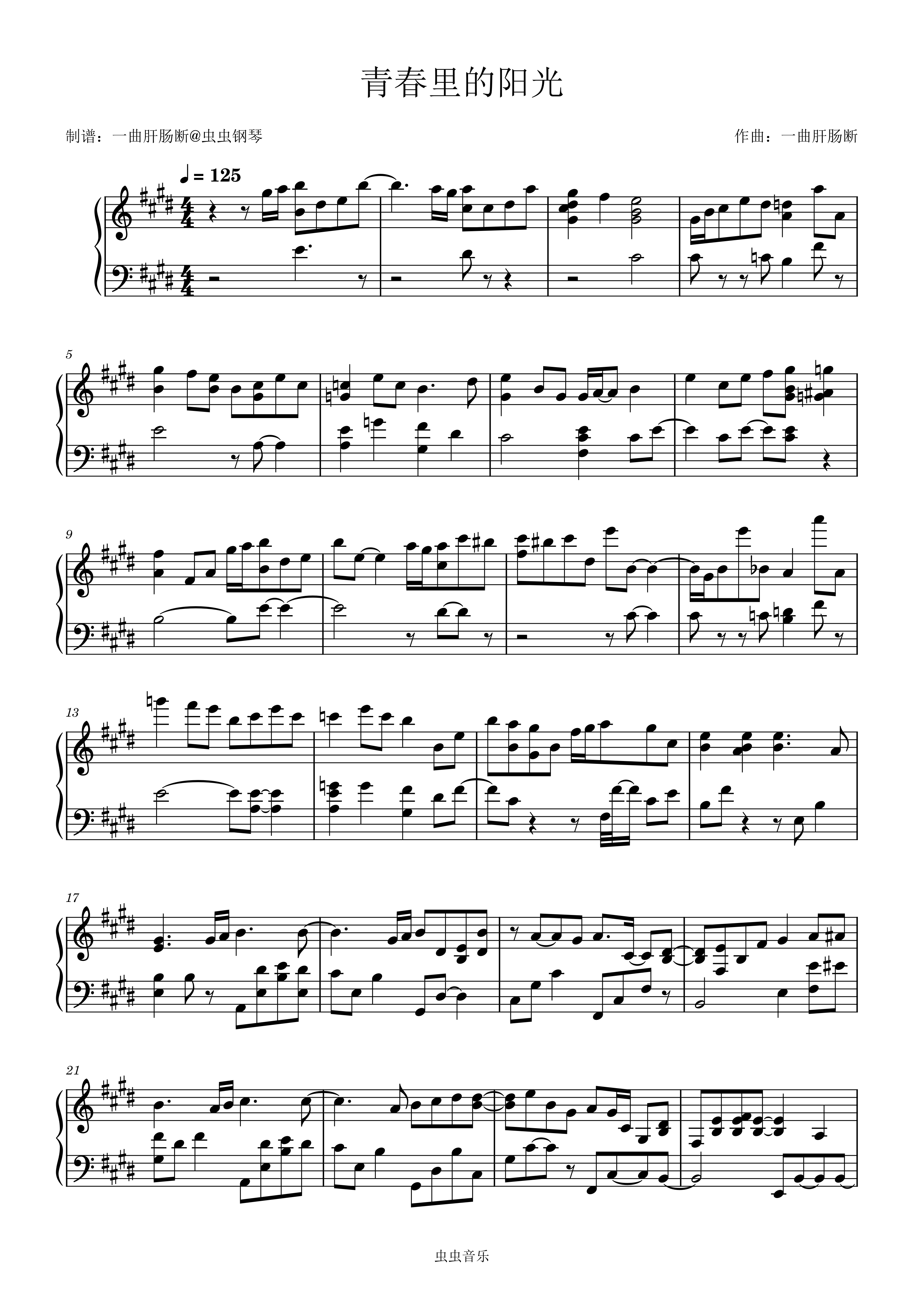 青春里的阳光钢琴简谱 数字双手 一曲肝肠断