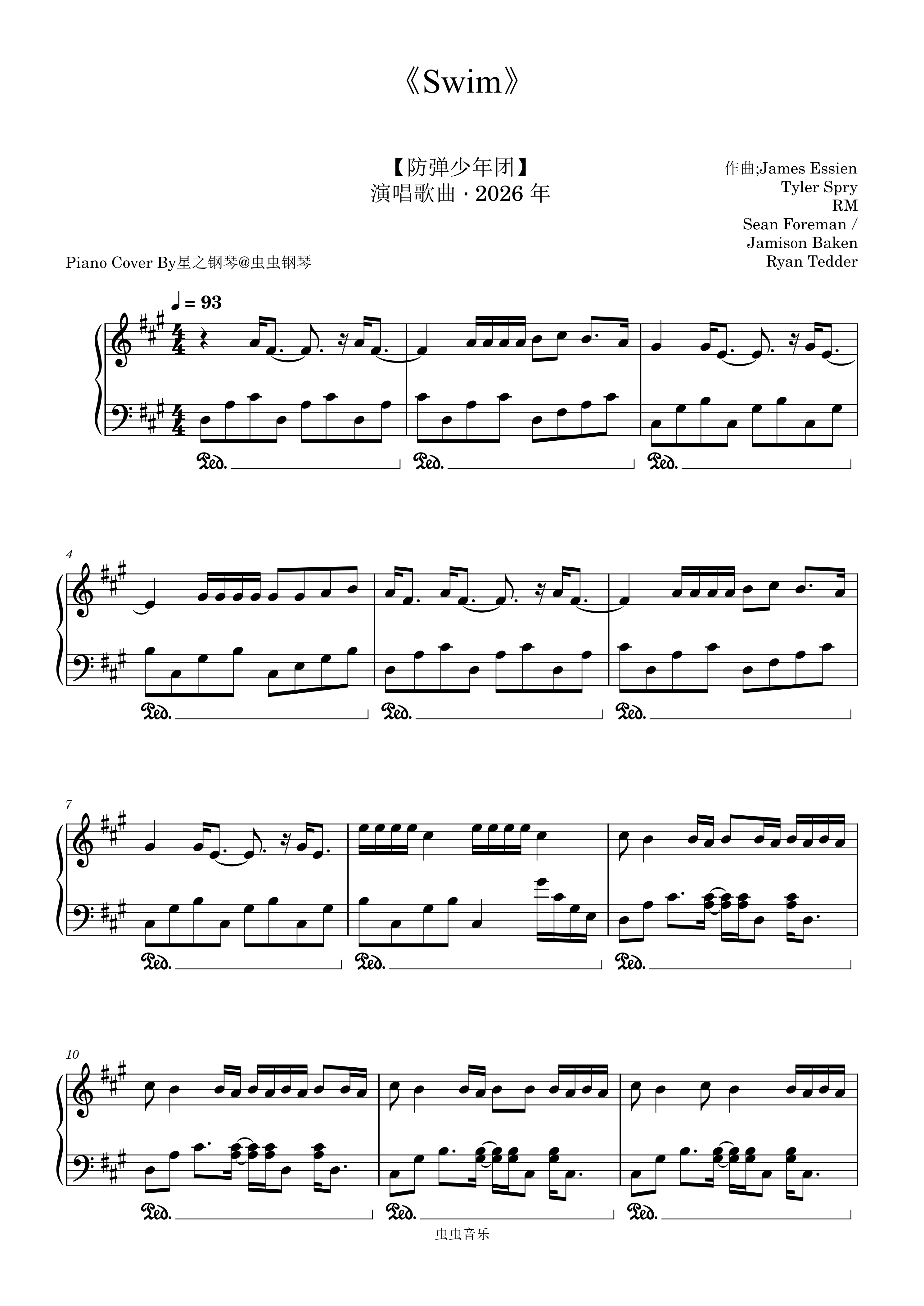 钢琴谱:【BTS】《Swim》还原钢琴谱~星之钢琴~