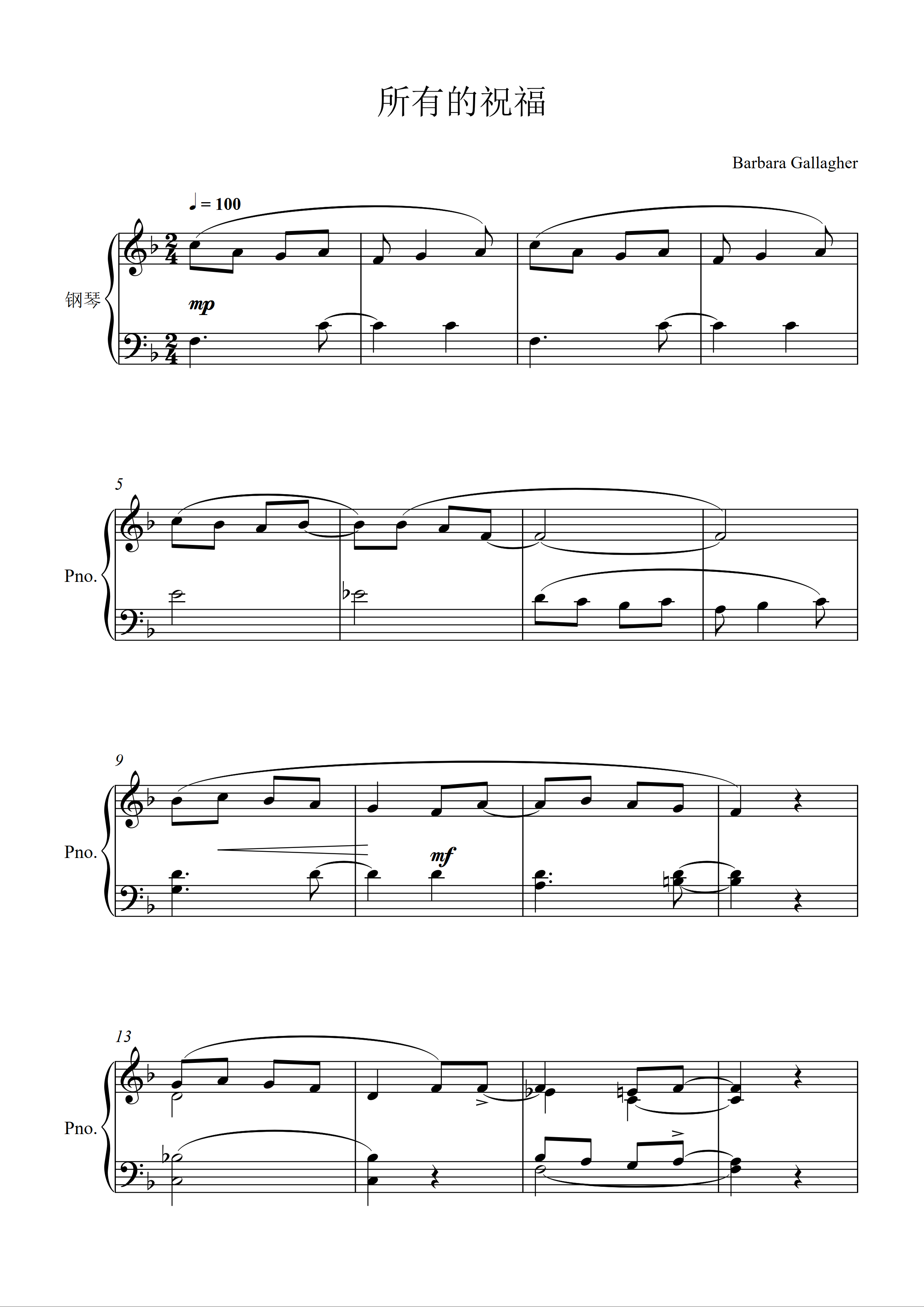 • 和平的祝愿钢琴简谱 D调 数字双手