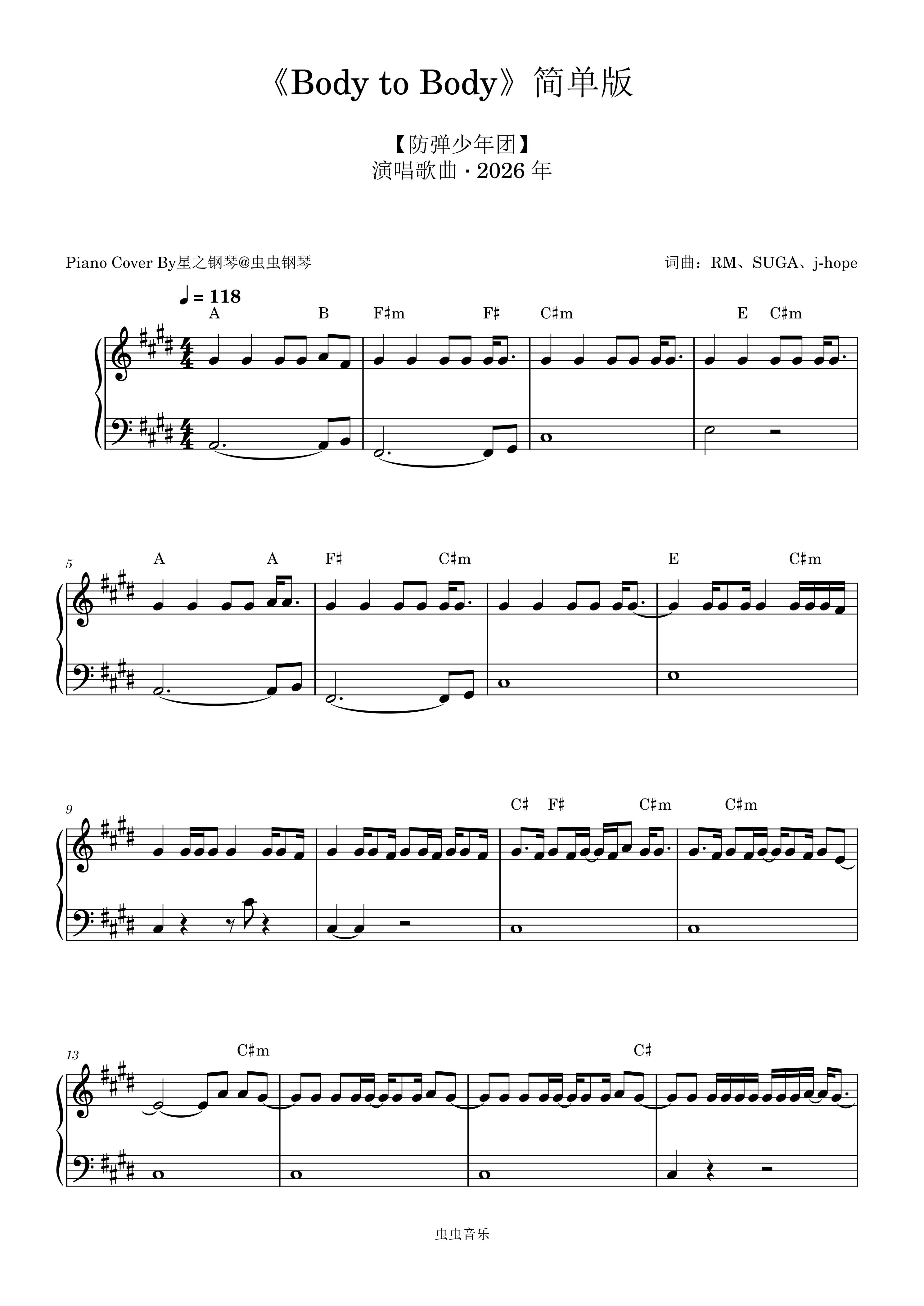 Body to Body钢琴简谱 数字双手 RM、SUGA、j-hope