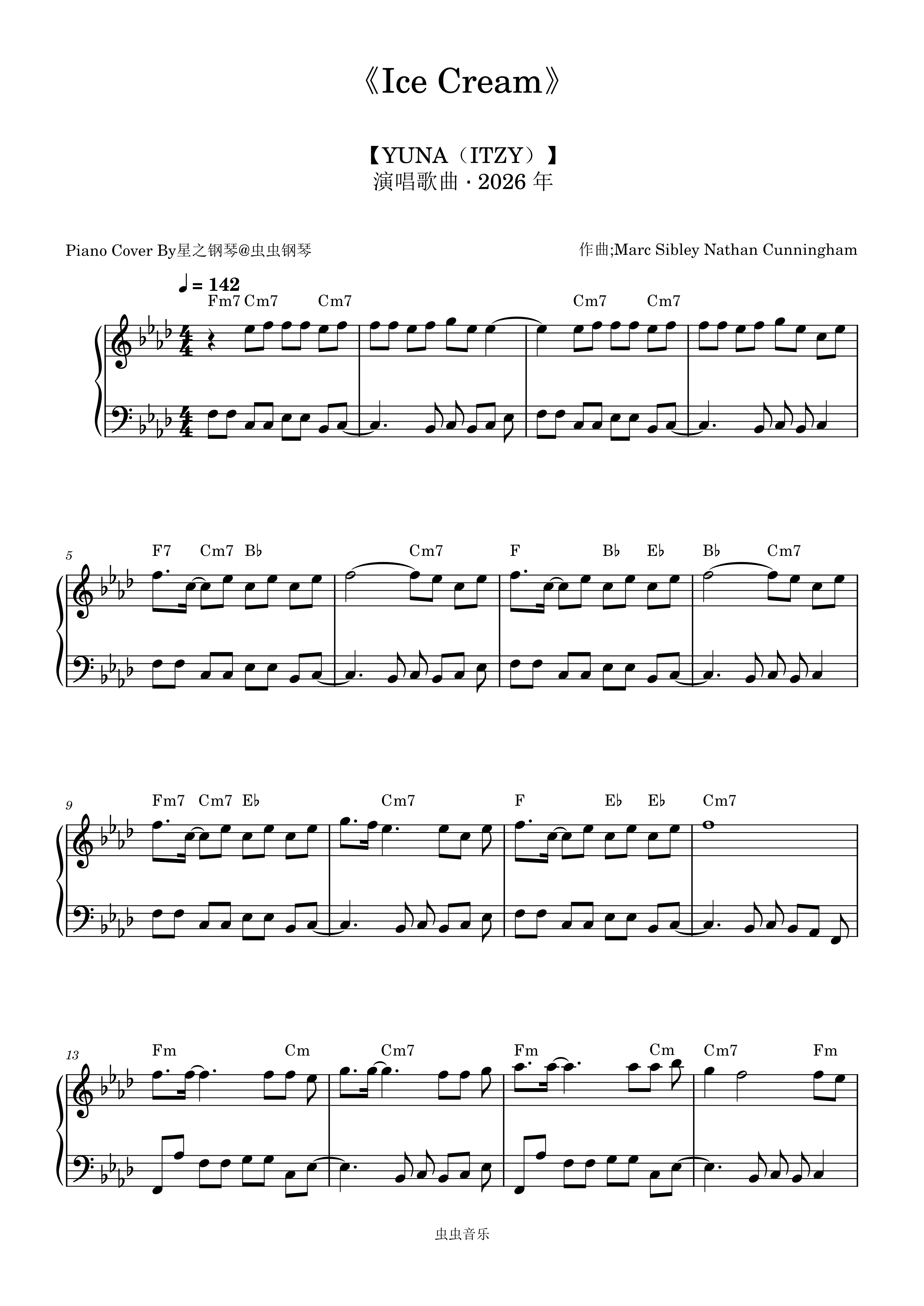 钢琴谱:【有娜(ITZY)】《Ice Cream》还原钢琴谱~星之钢琴~