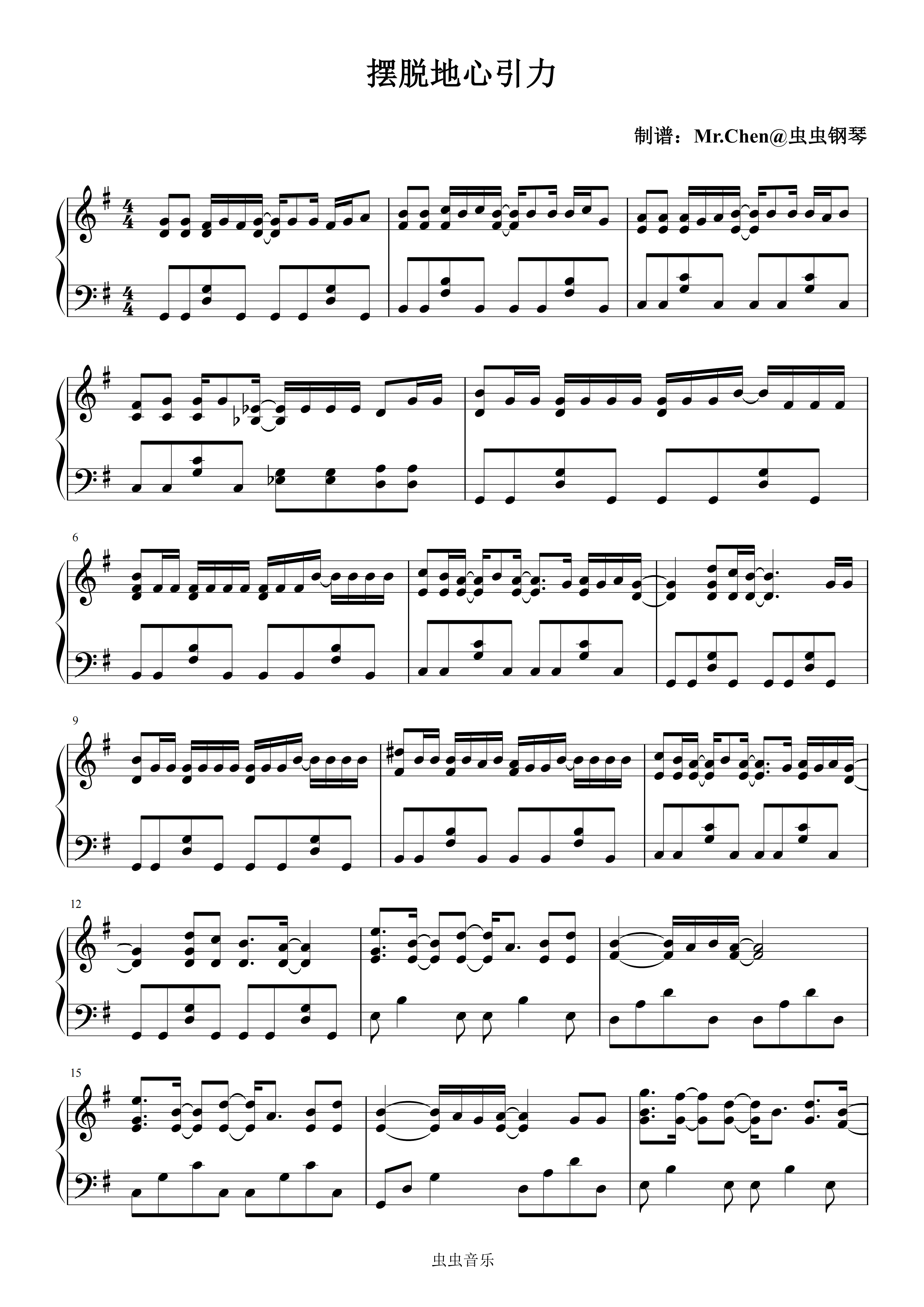 摆脱地心引力钢琴简谱 数字双手 刘愉露