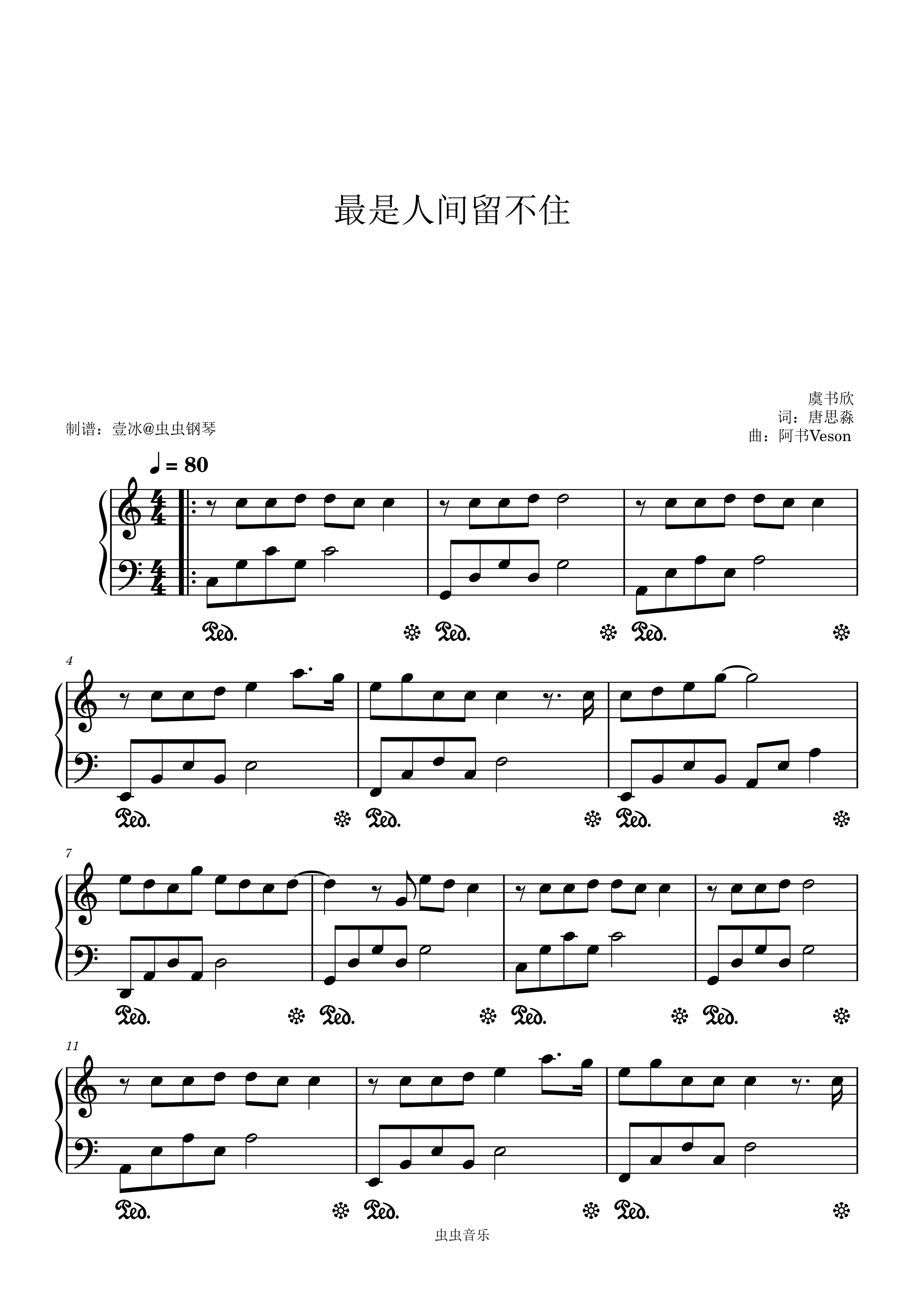 钢琴谱:最是人间留不住 - 虞书欣 C调