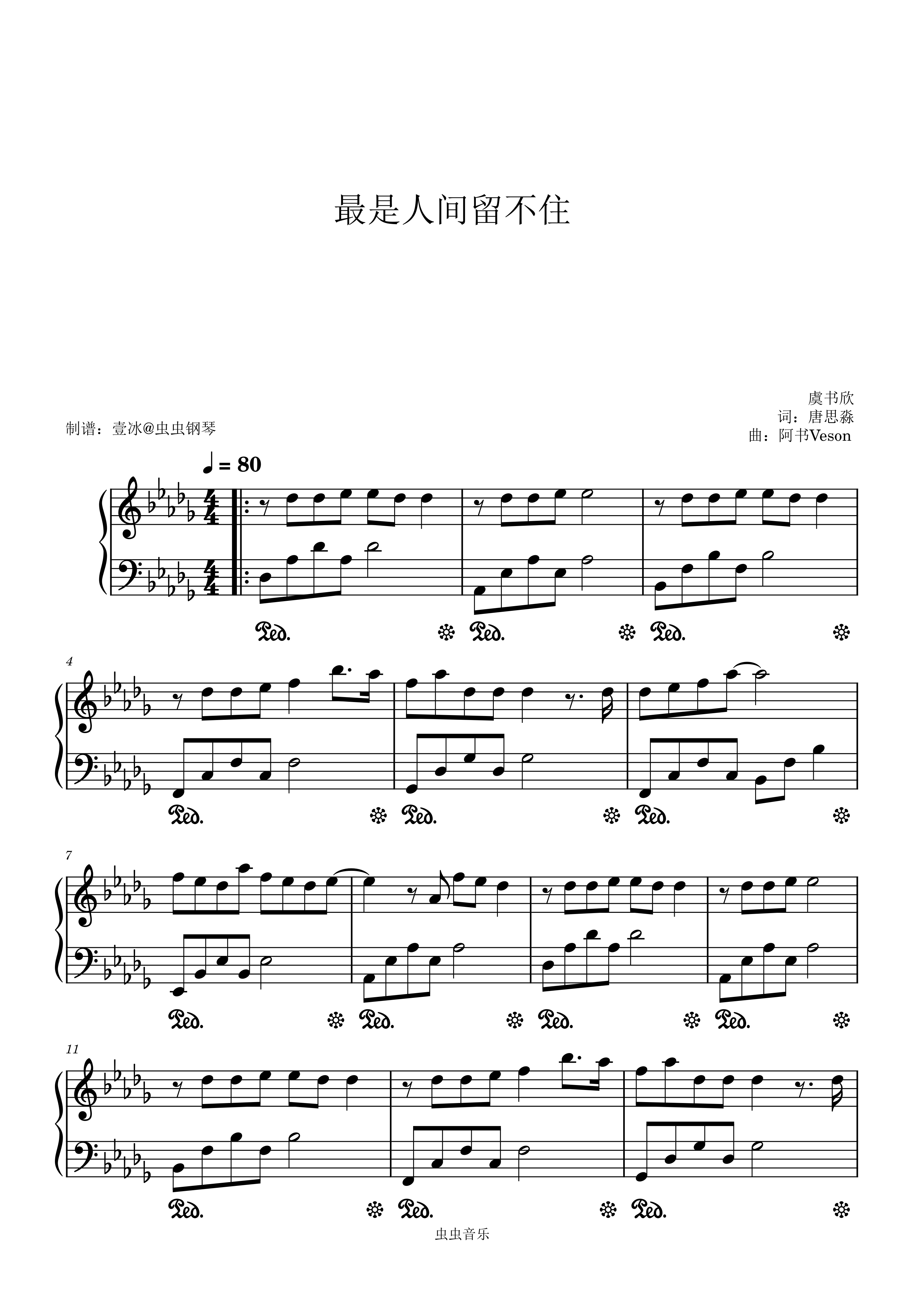 钢琴谱:最是人间留不住 - 虞书欣 原调
