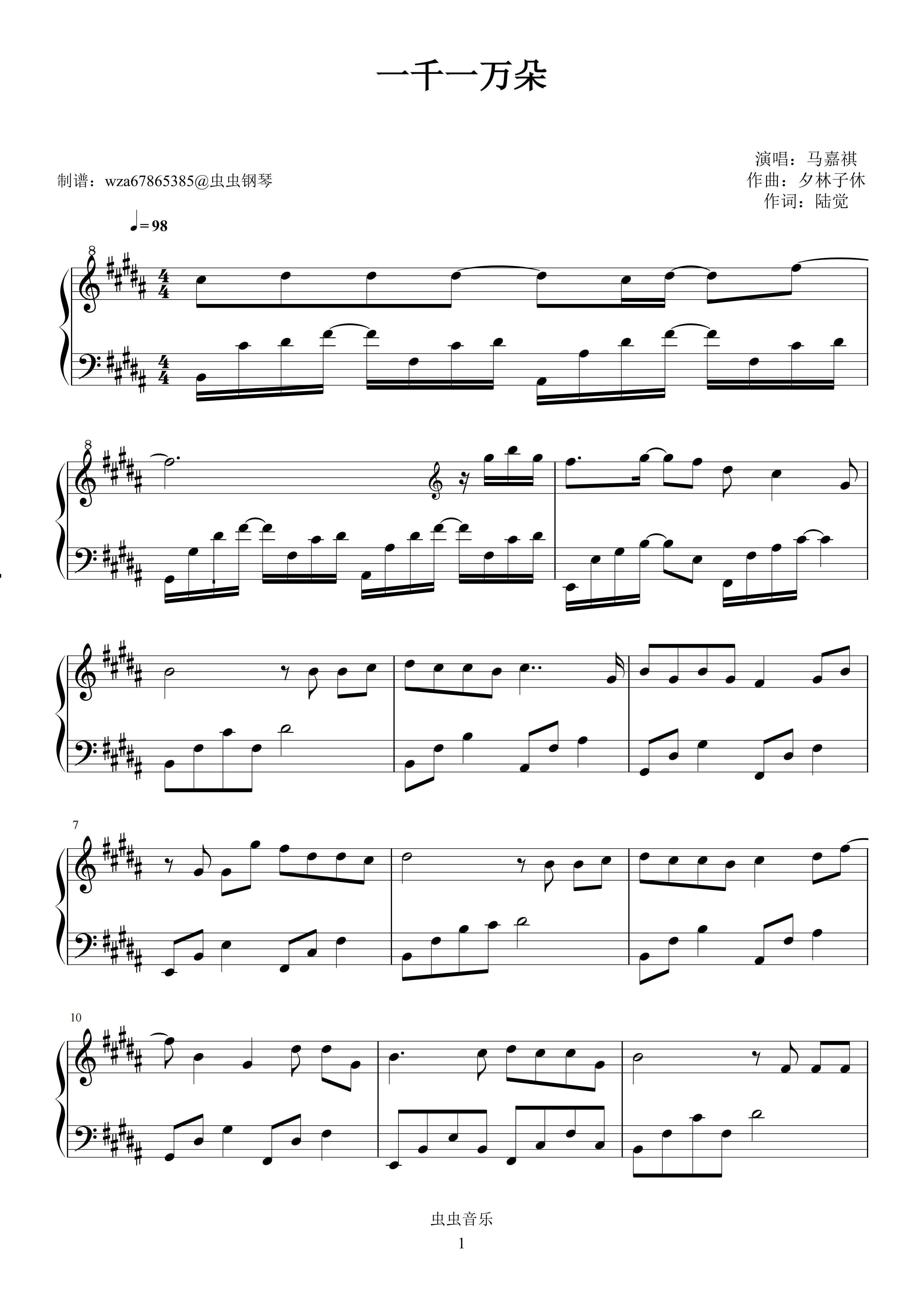 钢琴谱:一千一万朵