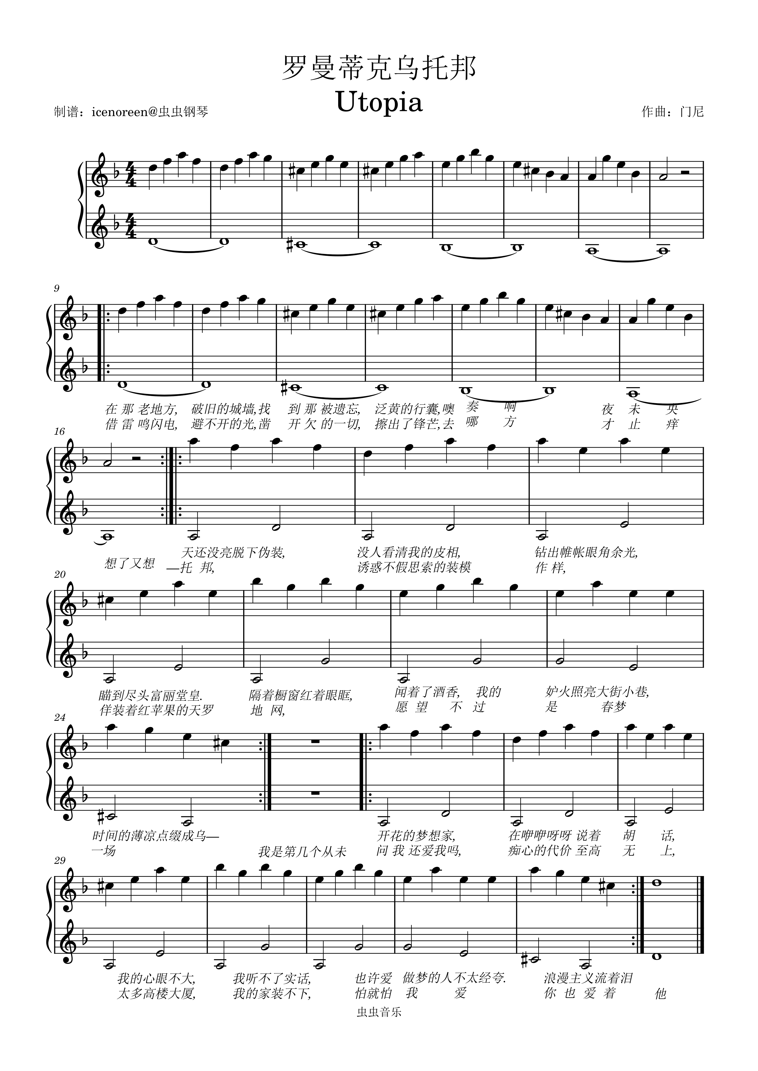 钢琴谱:罗曼蒂克乌托邦 d小调原曲伴奏
