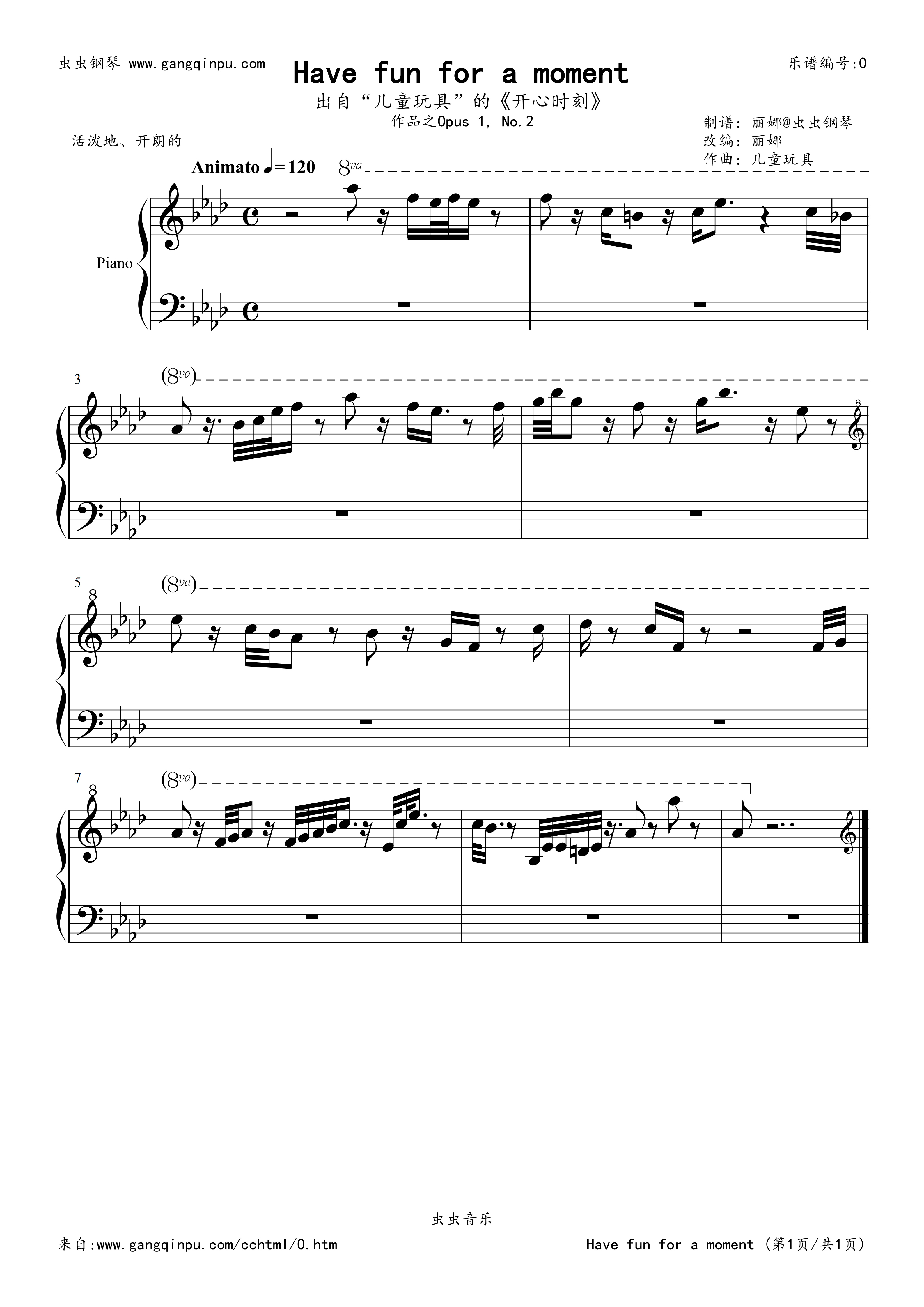 钢琴谱:Have fun for a moment (作品1-2) 丽娜改编