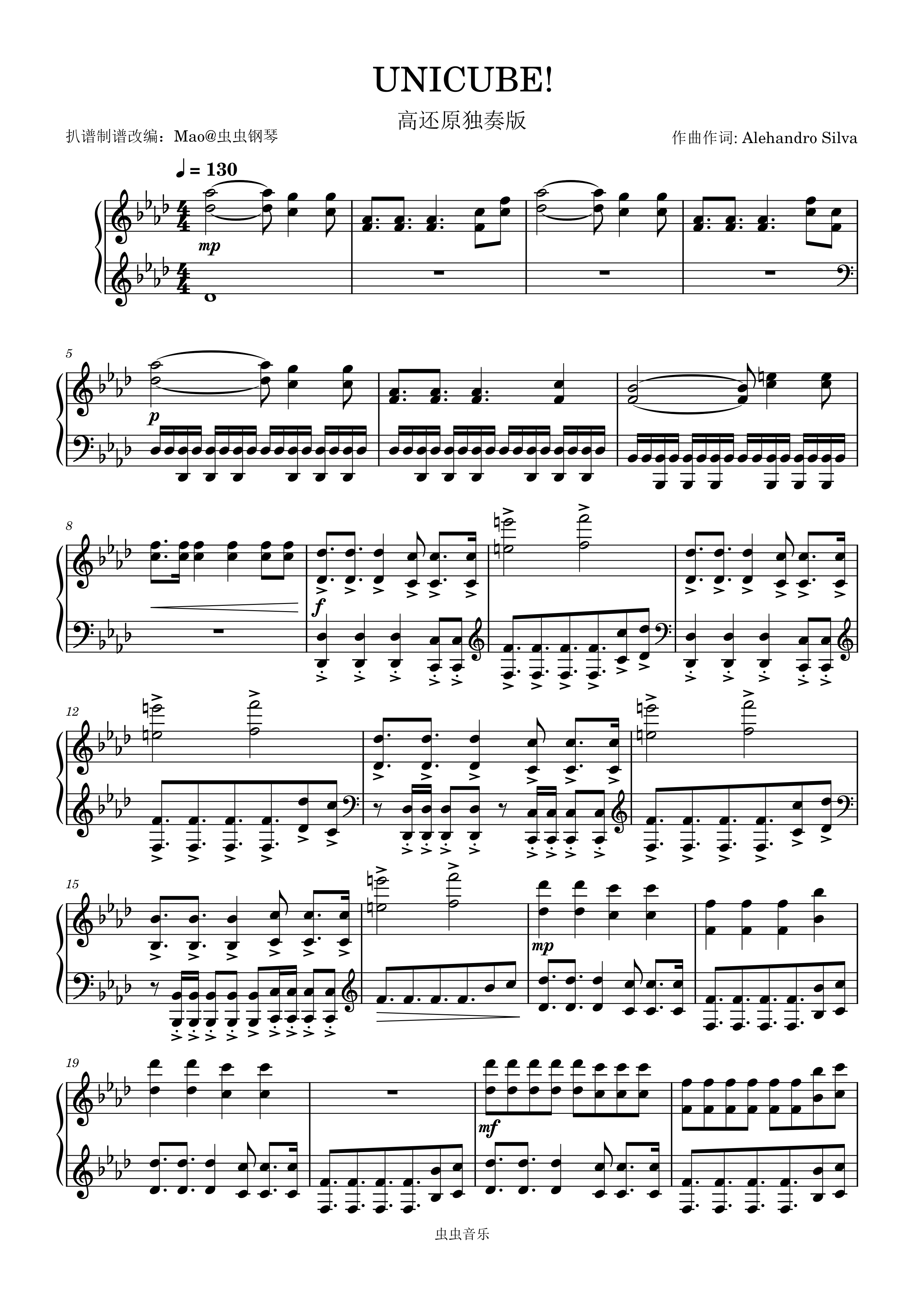 钢琴谱:UNICUBE!高还原独奏版