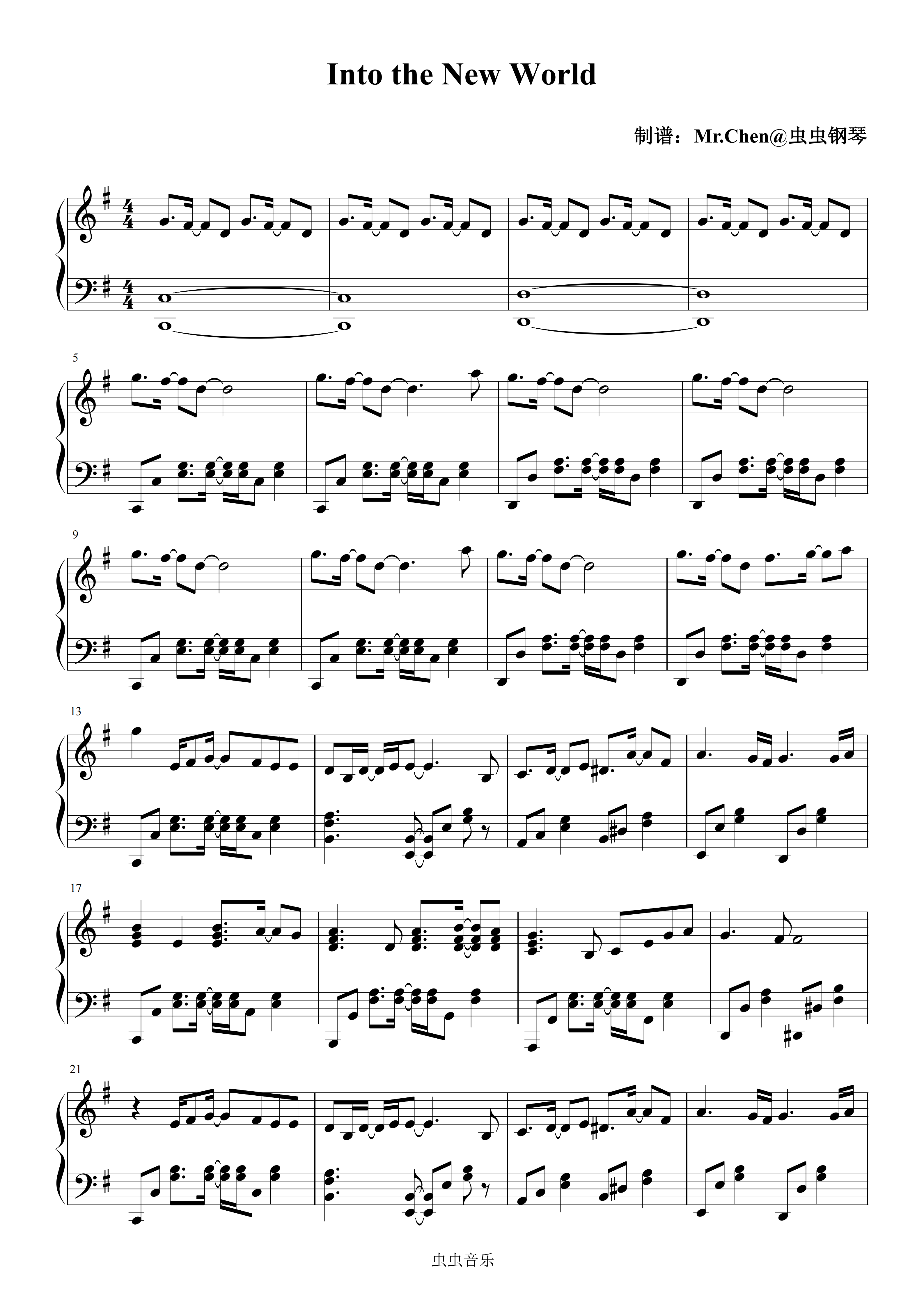 • 新地球钢琴简谱 C调 数字双手 林秋离