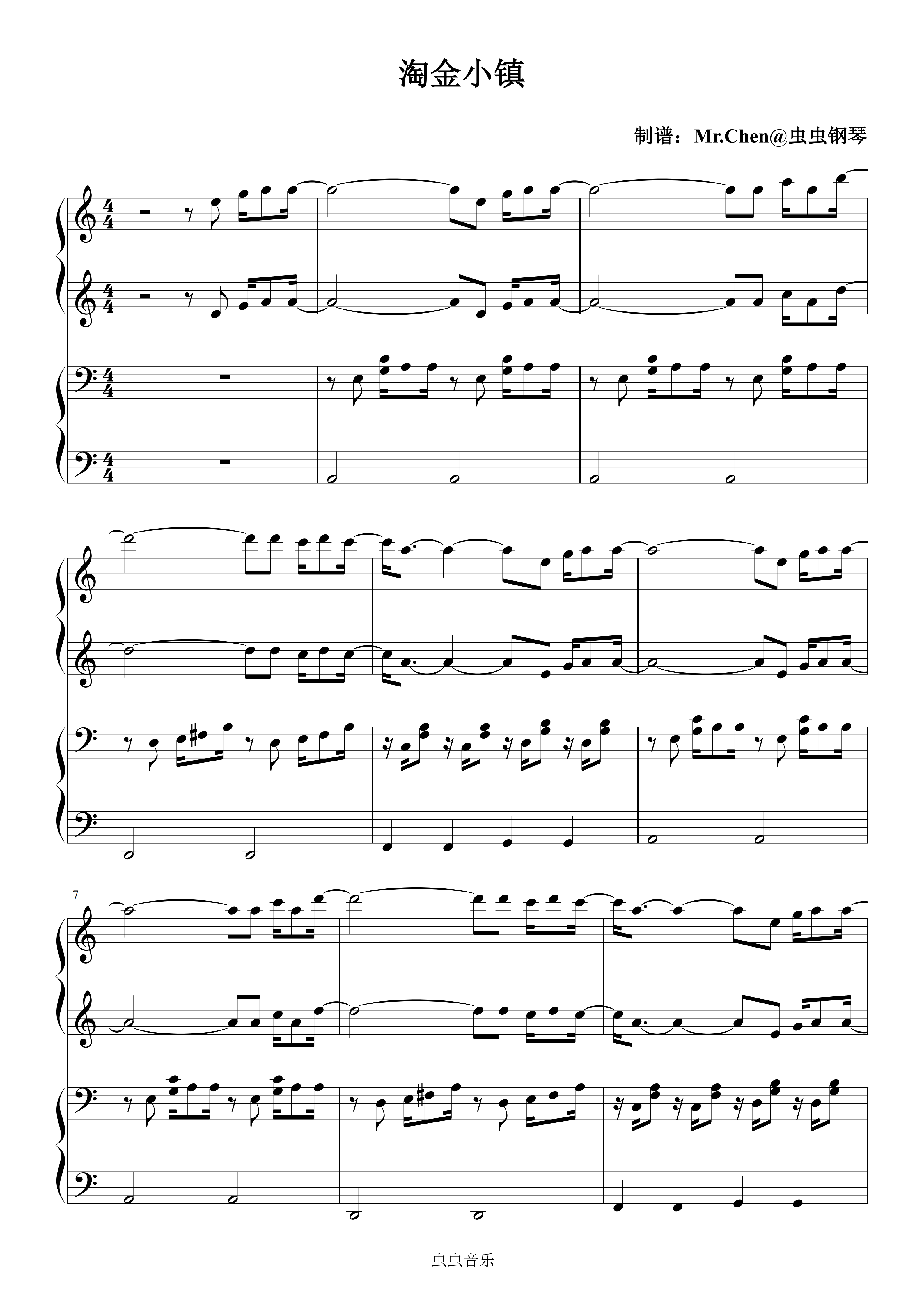 钢琴谱:淘金小镇 (四手联弹)C调 - 周杰伦