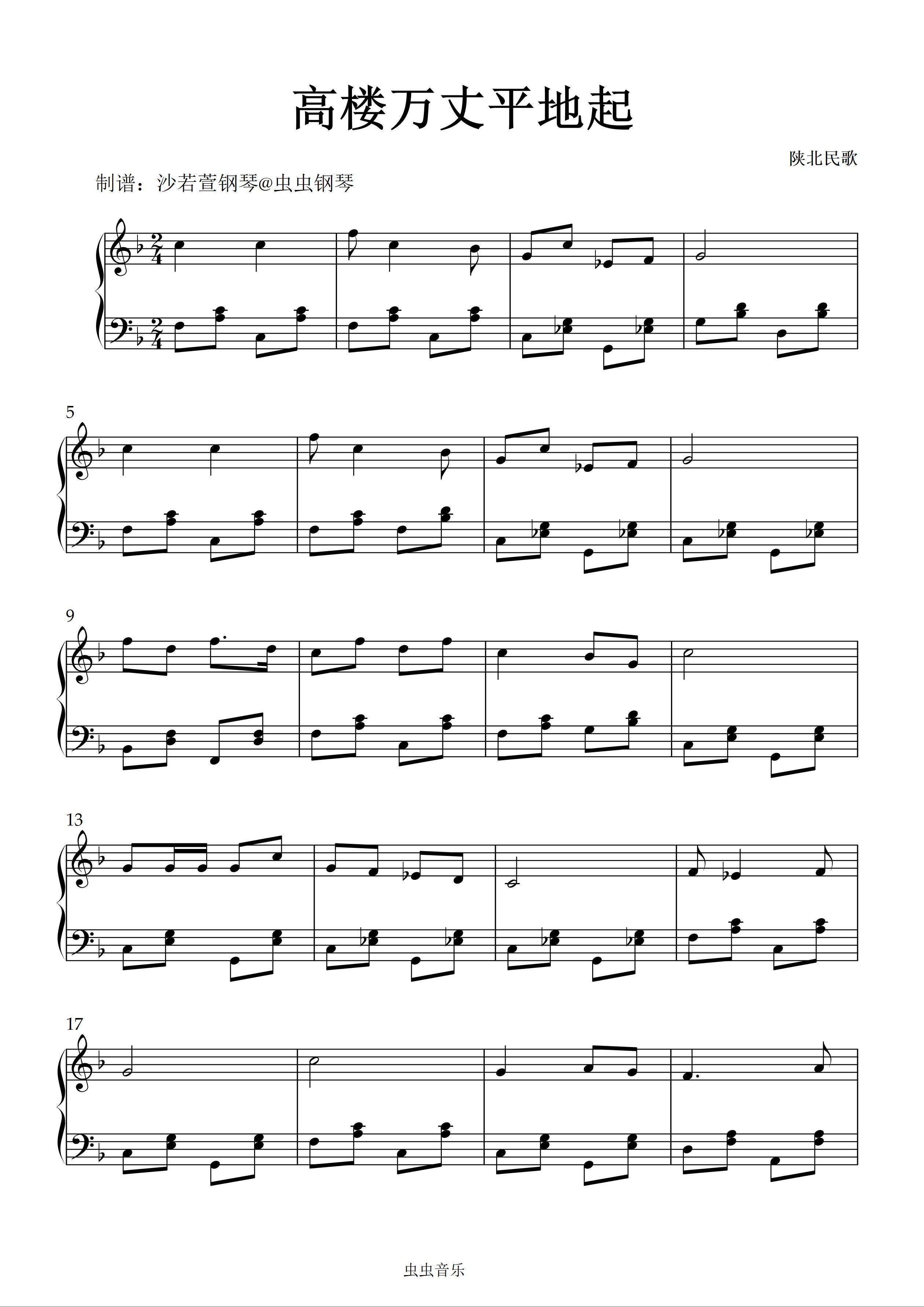 高楼万丈平地起钢琴简谱 数字双手 孙万福
