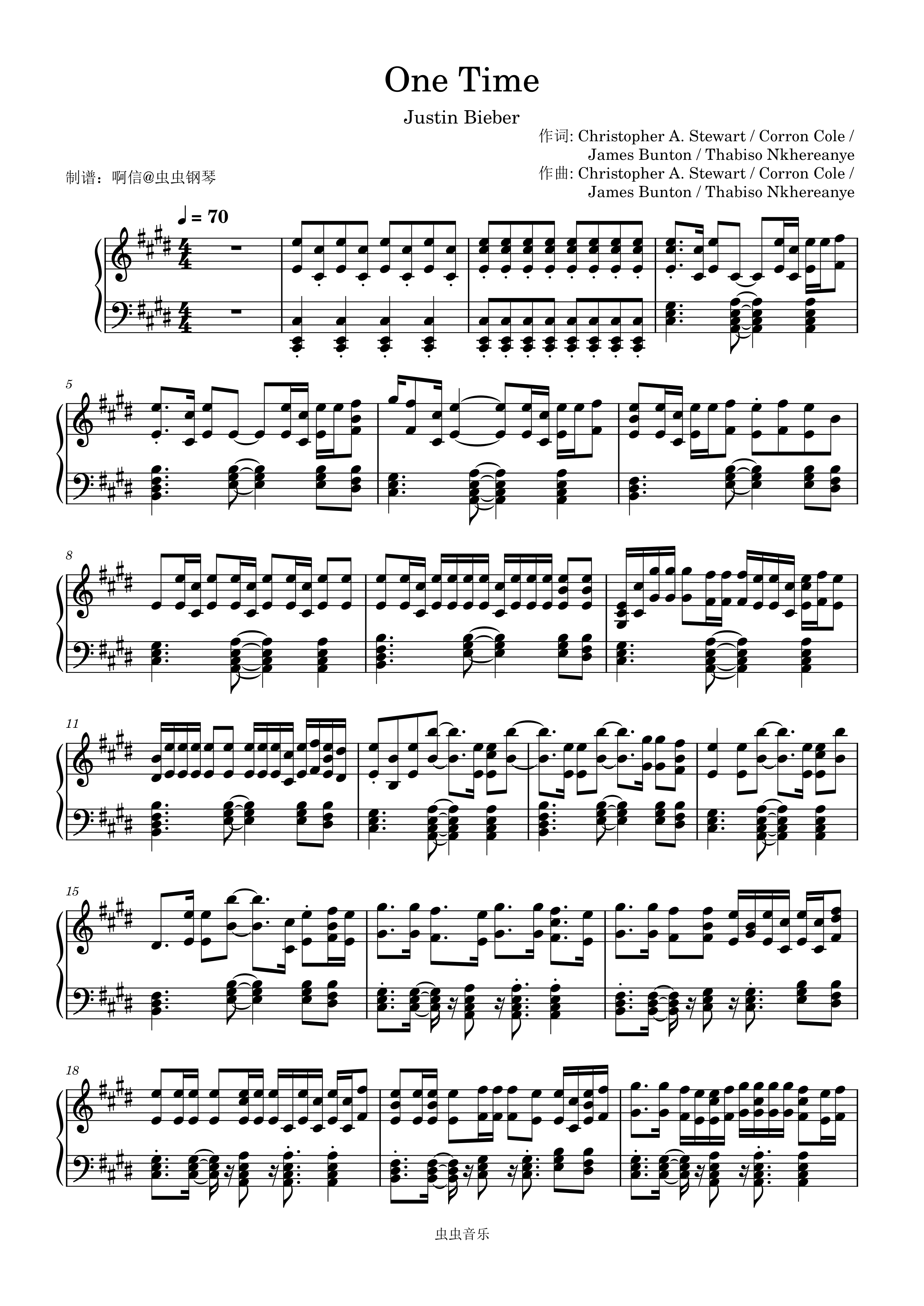 钢琴谱:One Time - Justin Bieber贾斯汀比伯-科切拉-E调