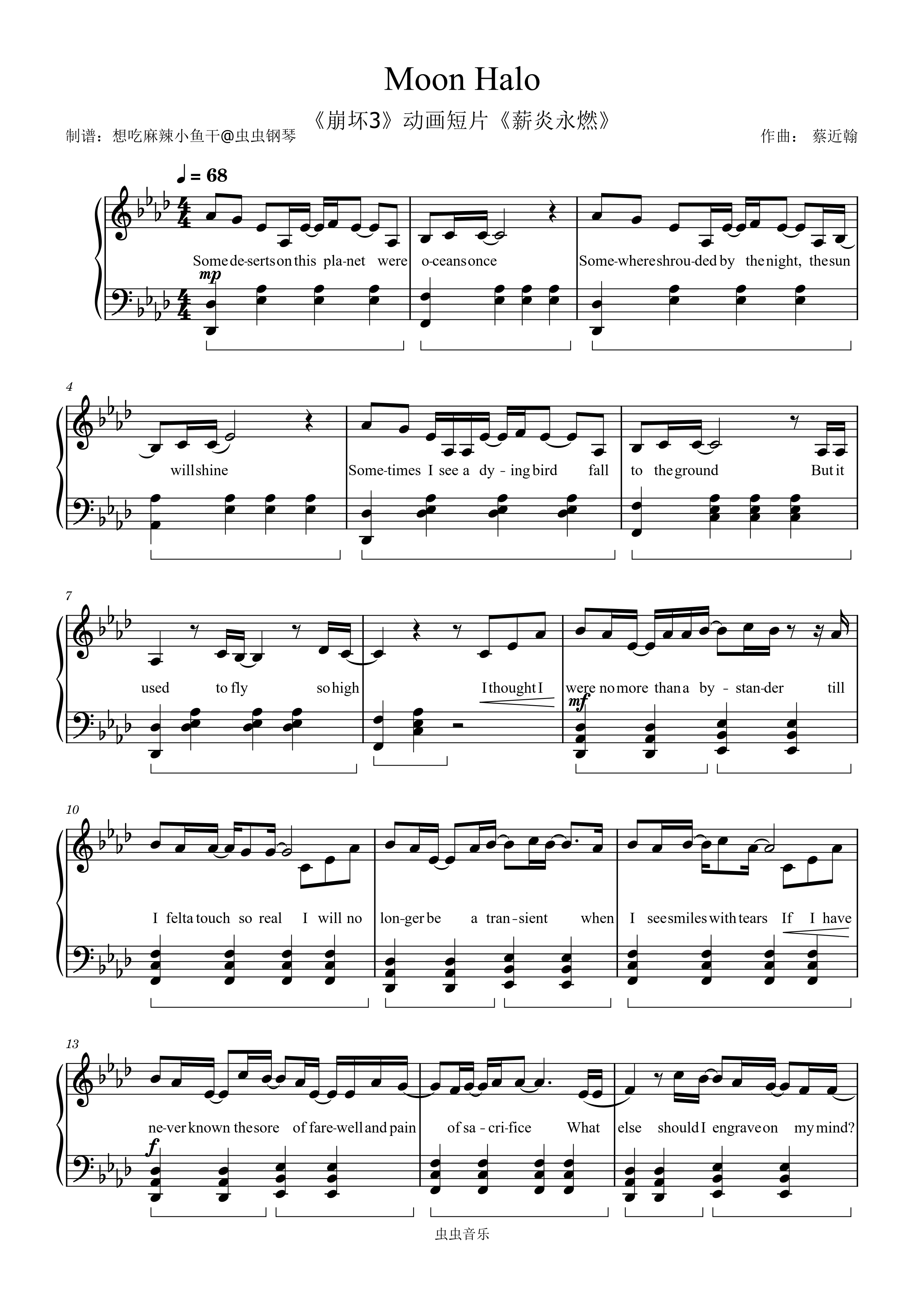 钢琴谱:Moon Halo(《崩坏3》动画短片《薪炎永燃》)