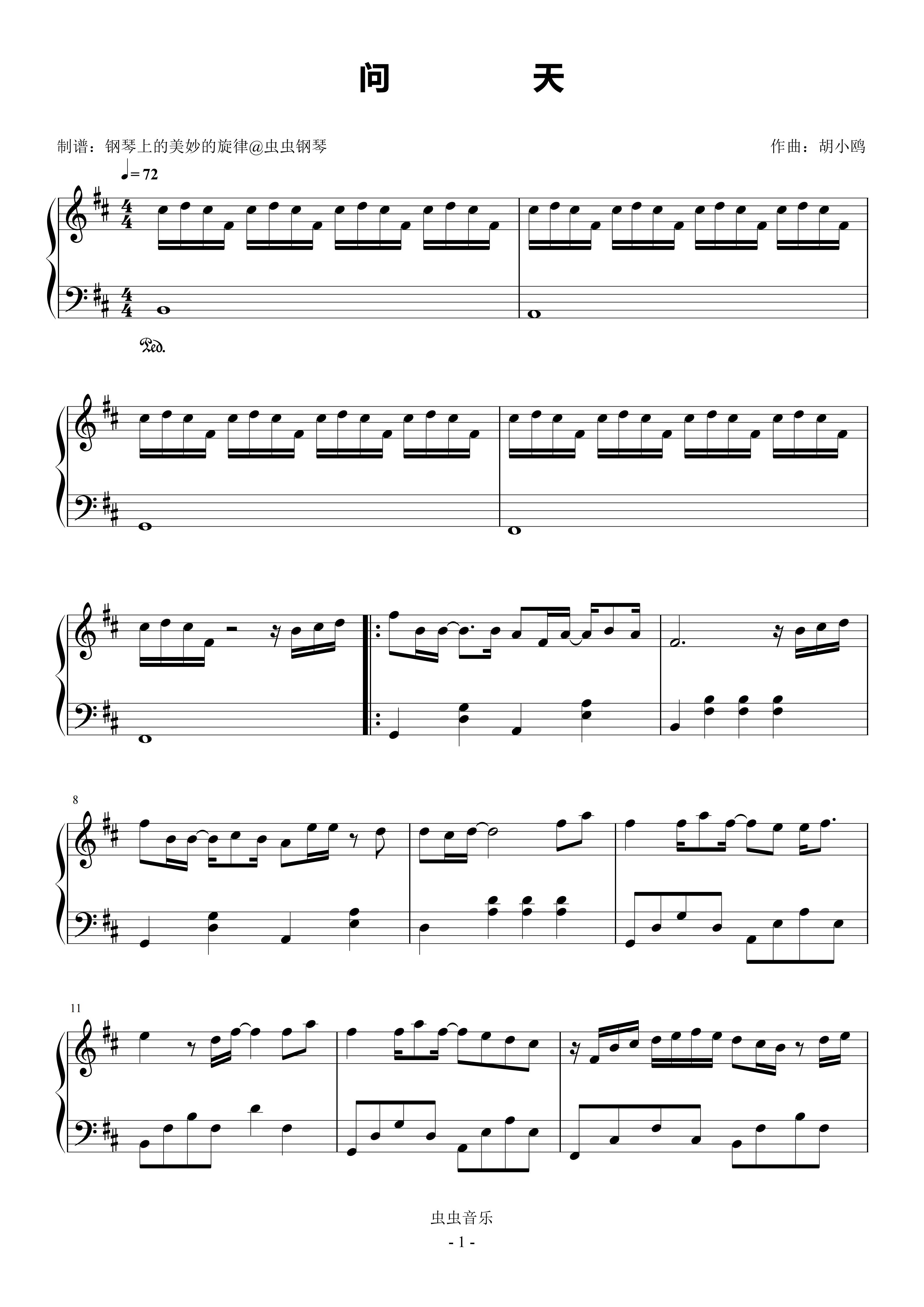 • 问天钢琴简谱 b调 数字双手