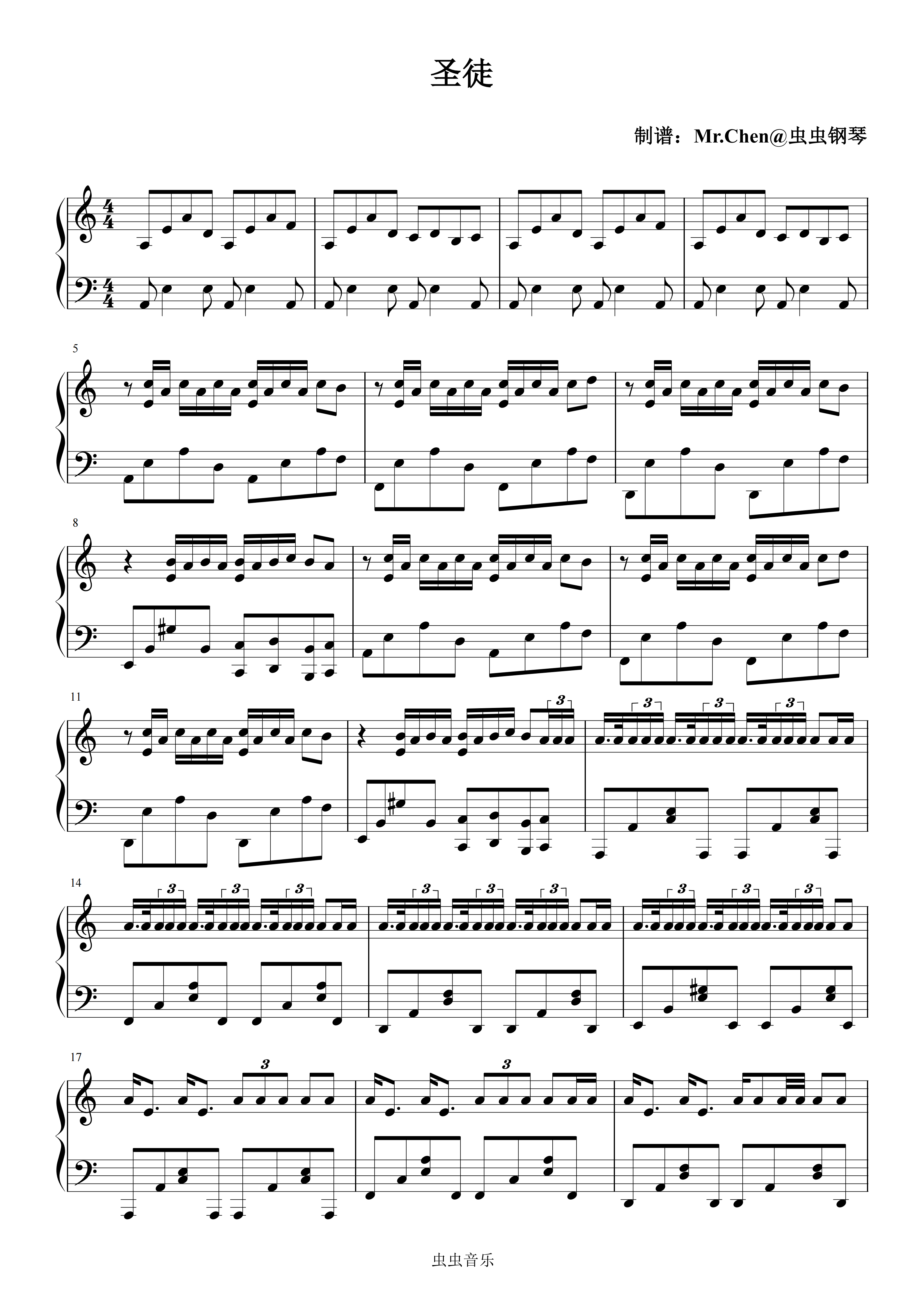 钢琴谱:圣徒 - 周杰伦 极度还原
