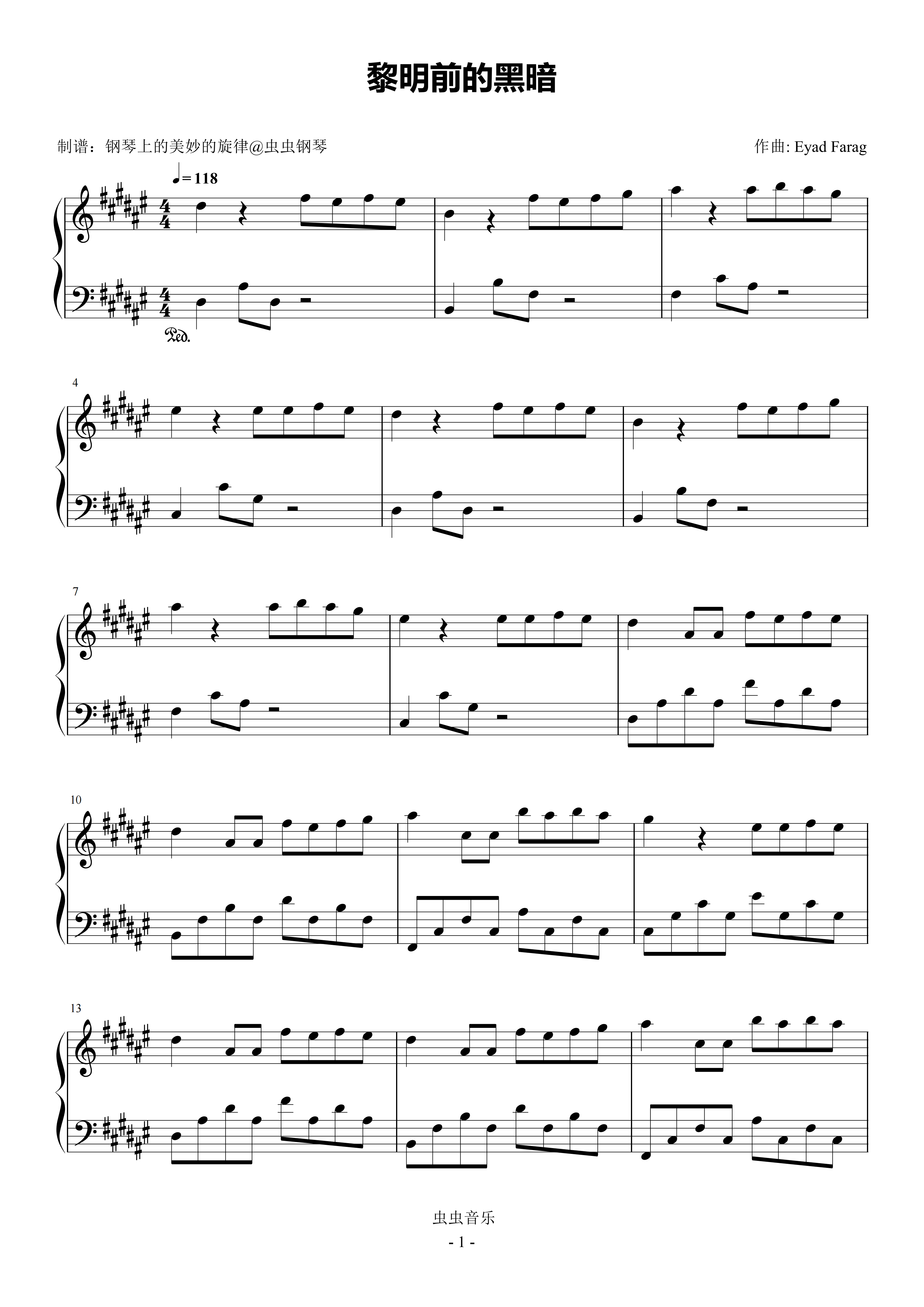 • 黎明前的黑暗钢琴简谱 C调 数字双手