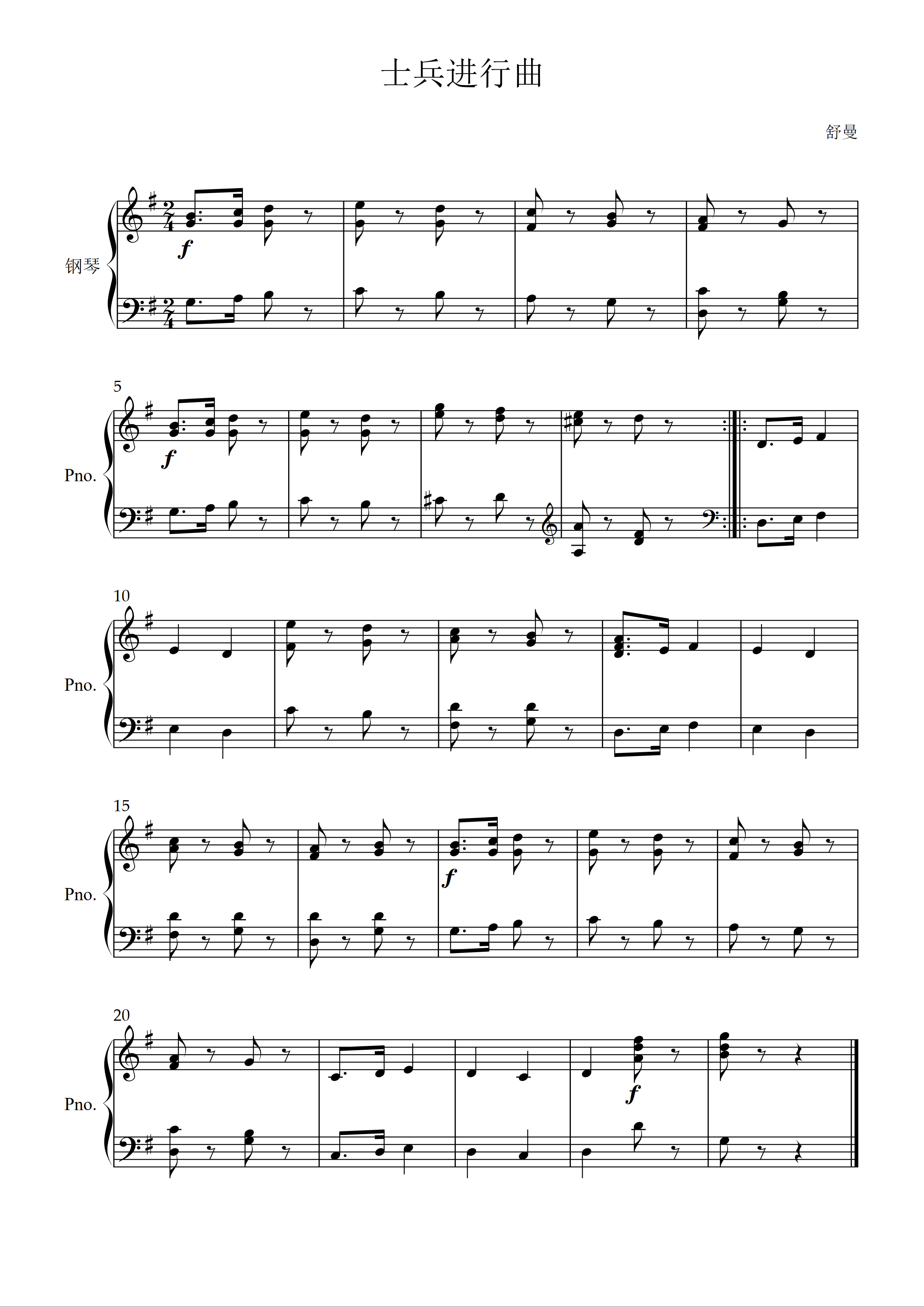 • 士兵进行曲钢琴简谱 G调 数字双手