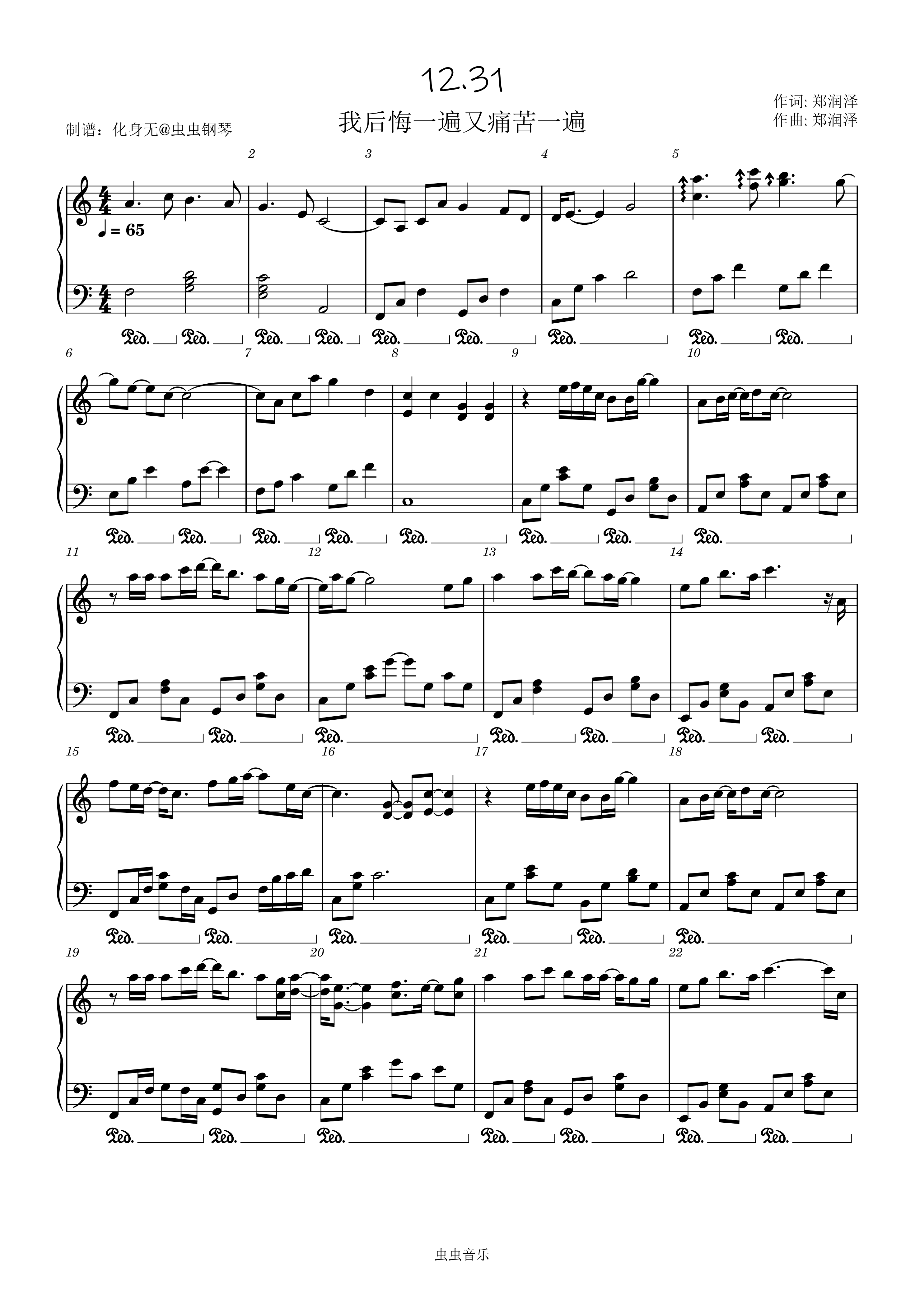钢琴谱:12.31 C调钢琴独奏版 化身无编配