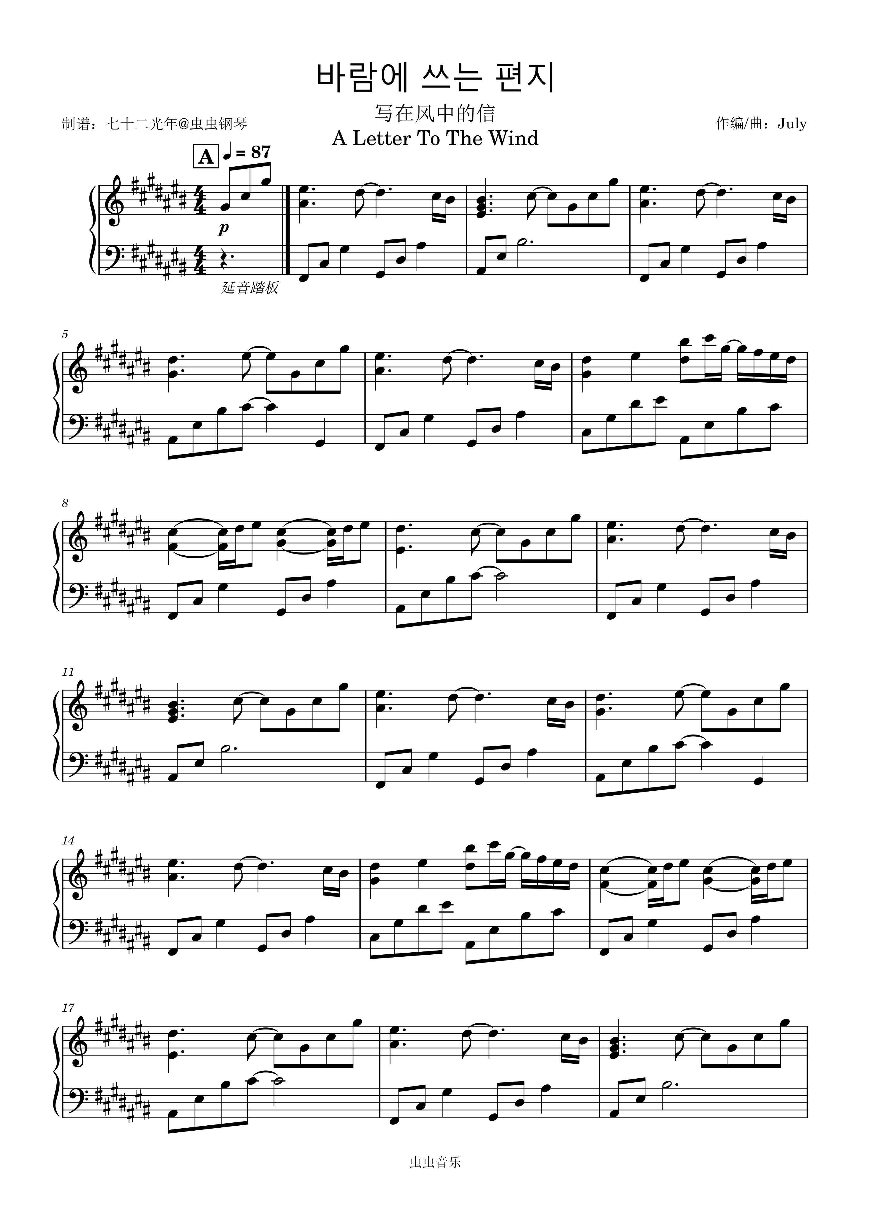 钢琴谱:바람에 쓰는 편지 写在风中的信 A Letter To The Wind