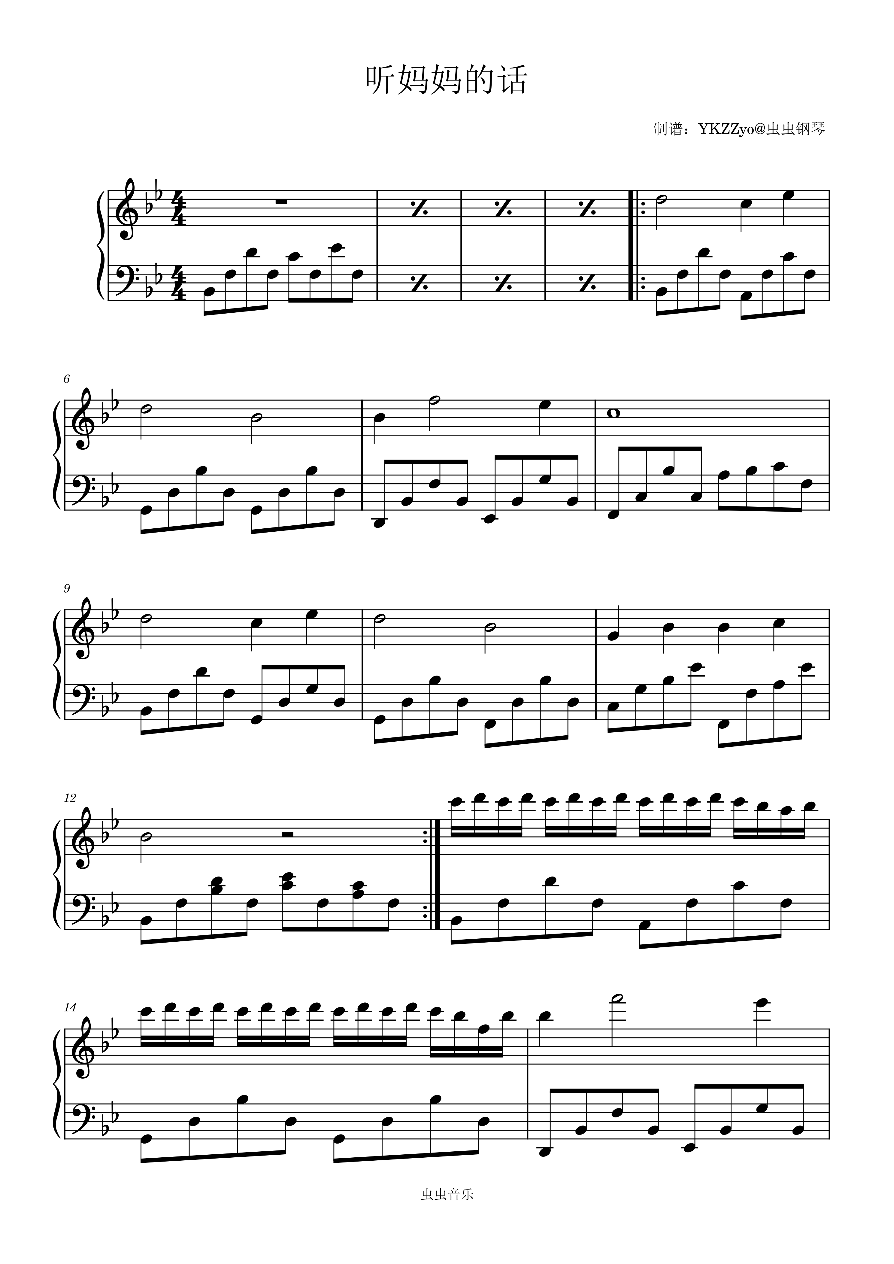 • 听妈妈的话钢琴简谱 Bb调 数字双手