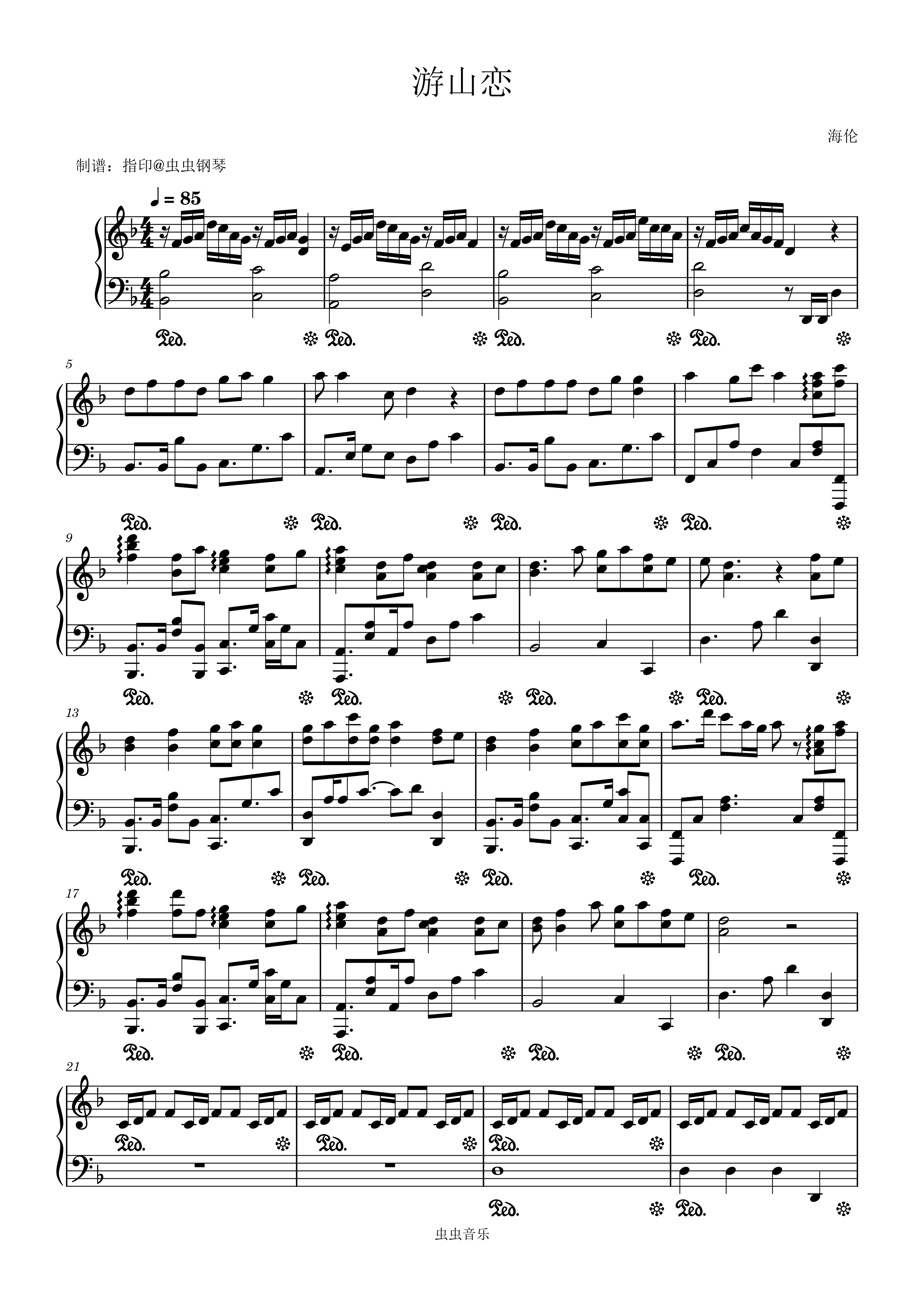 • 游山恋钢琴简谱 F调 数字双手 海伦
